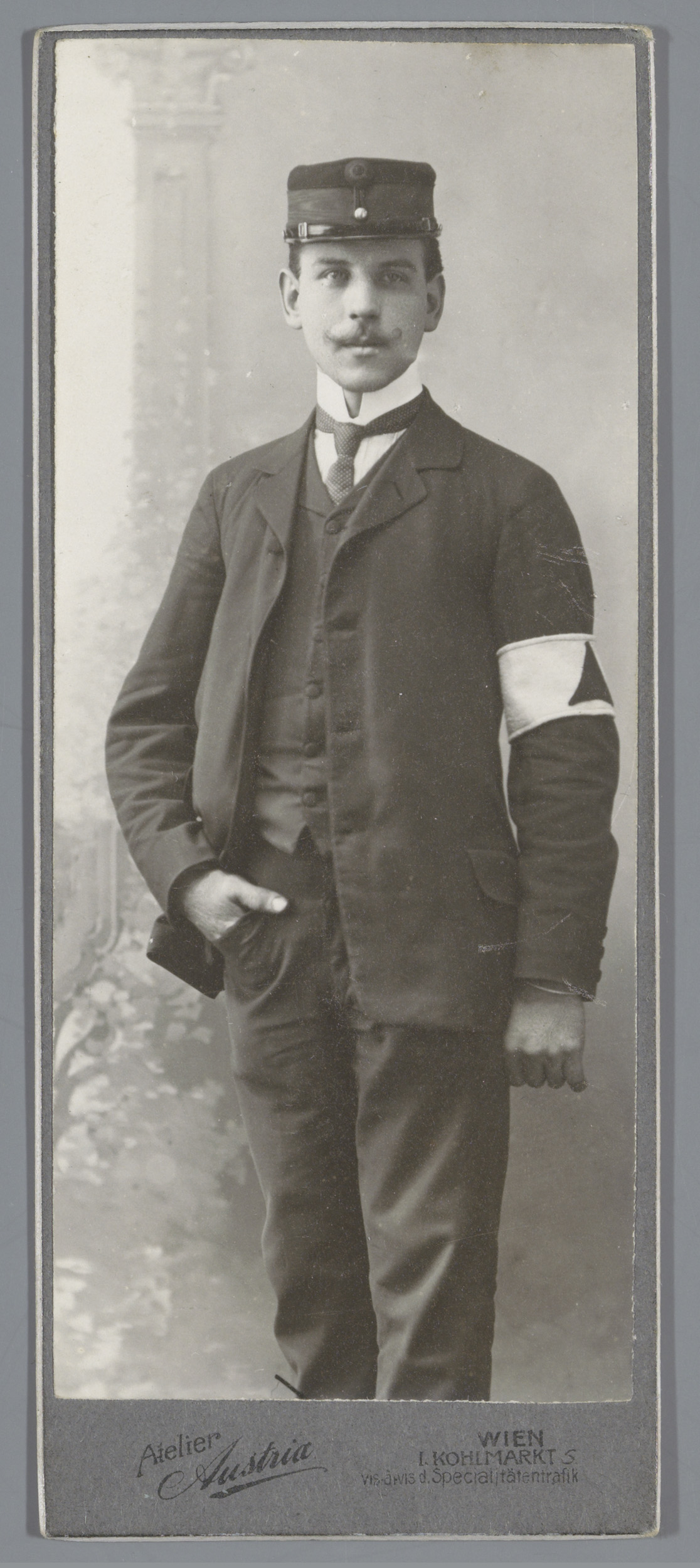Portret van een onbekende man met pet en band om arm
