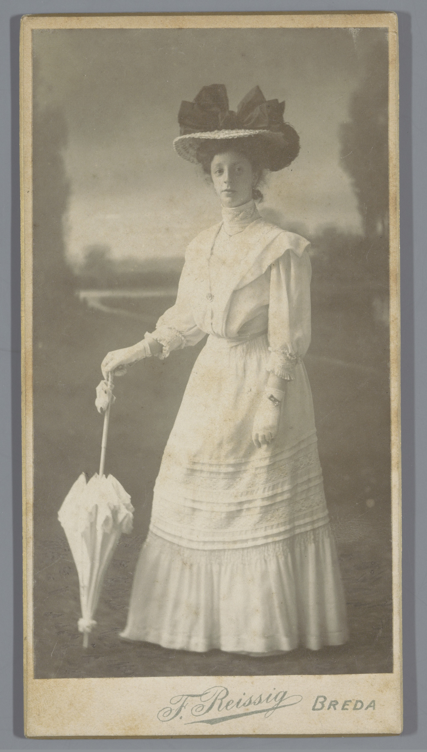 Portret van een onbekende vrouw met hoed en paraplu