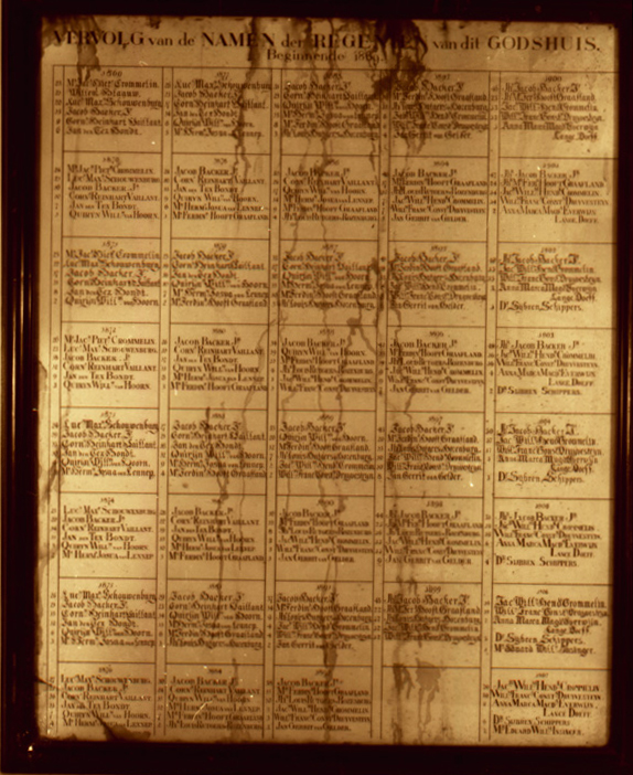 Jaarlijst regenten burgerweeshuis 1829-1868