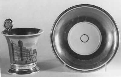 Kopje en schotel van koffie- en theeservies