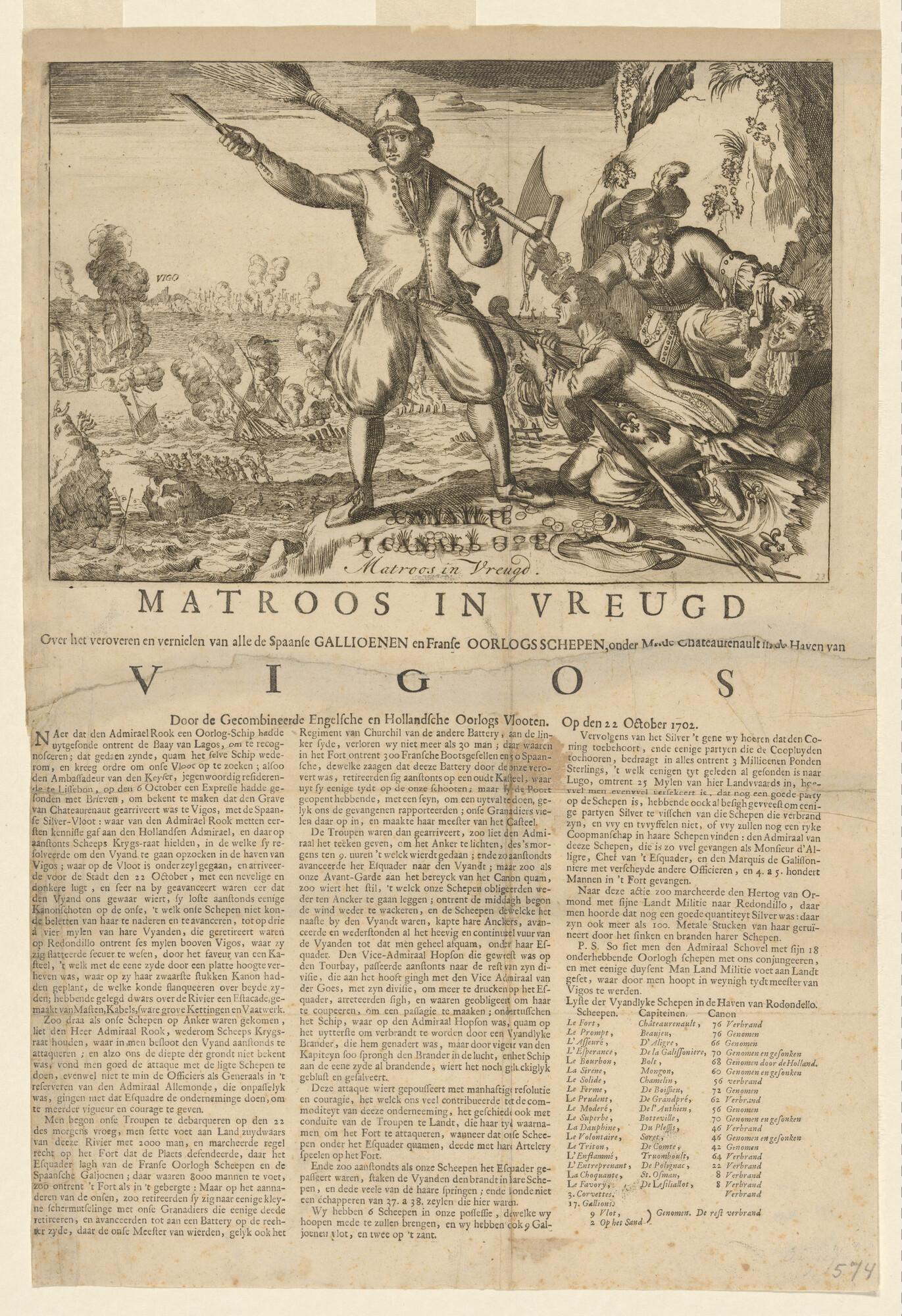 Een oorlogsschip met lenzend onder noodtuig