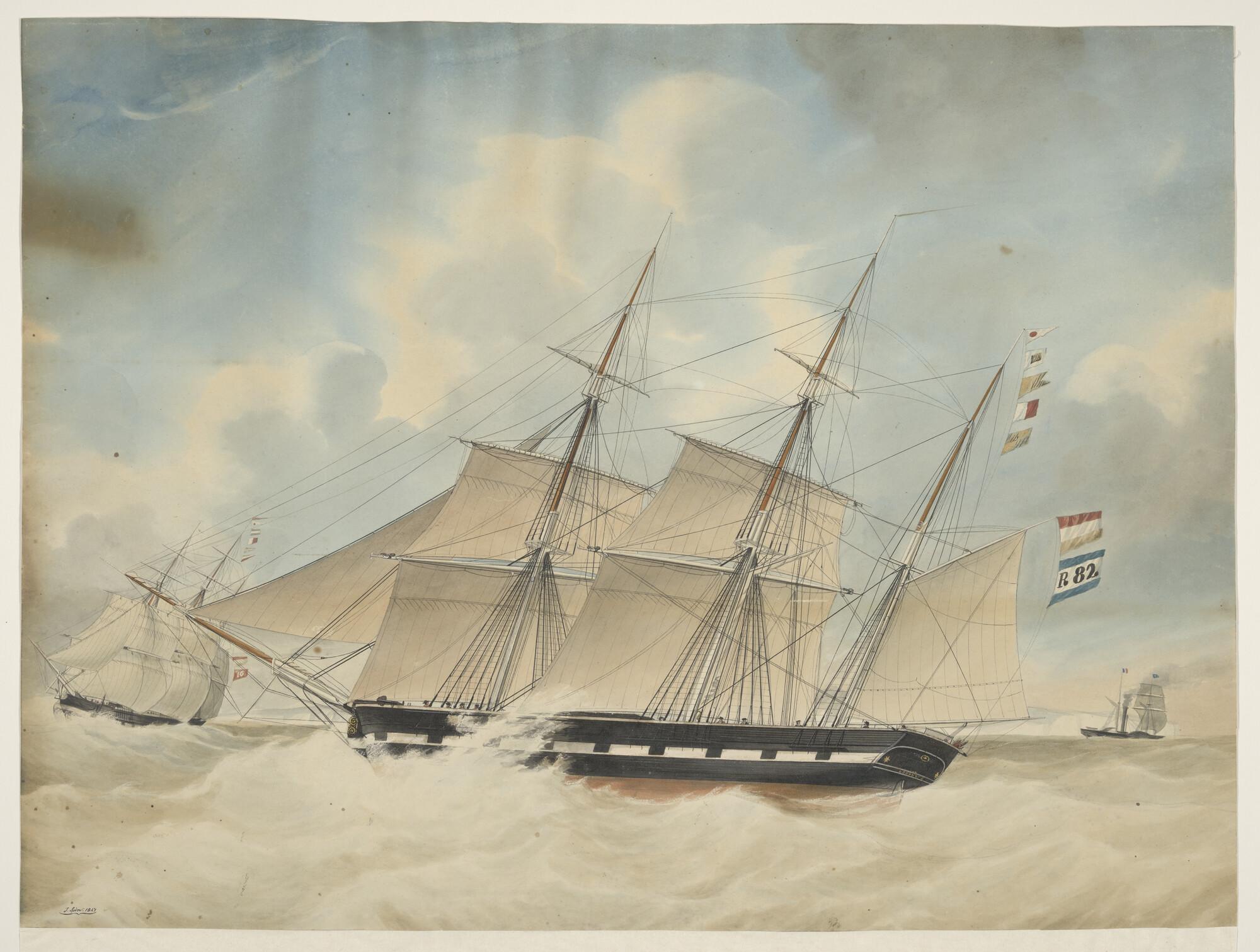 Het schoenerbrikschip Amicitia en het barkschip Suri...