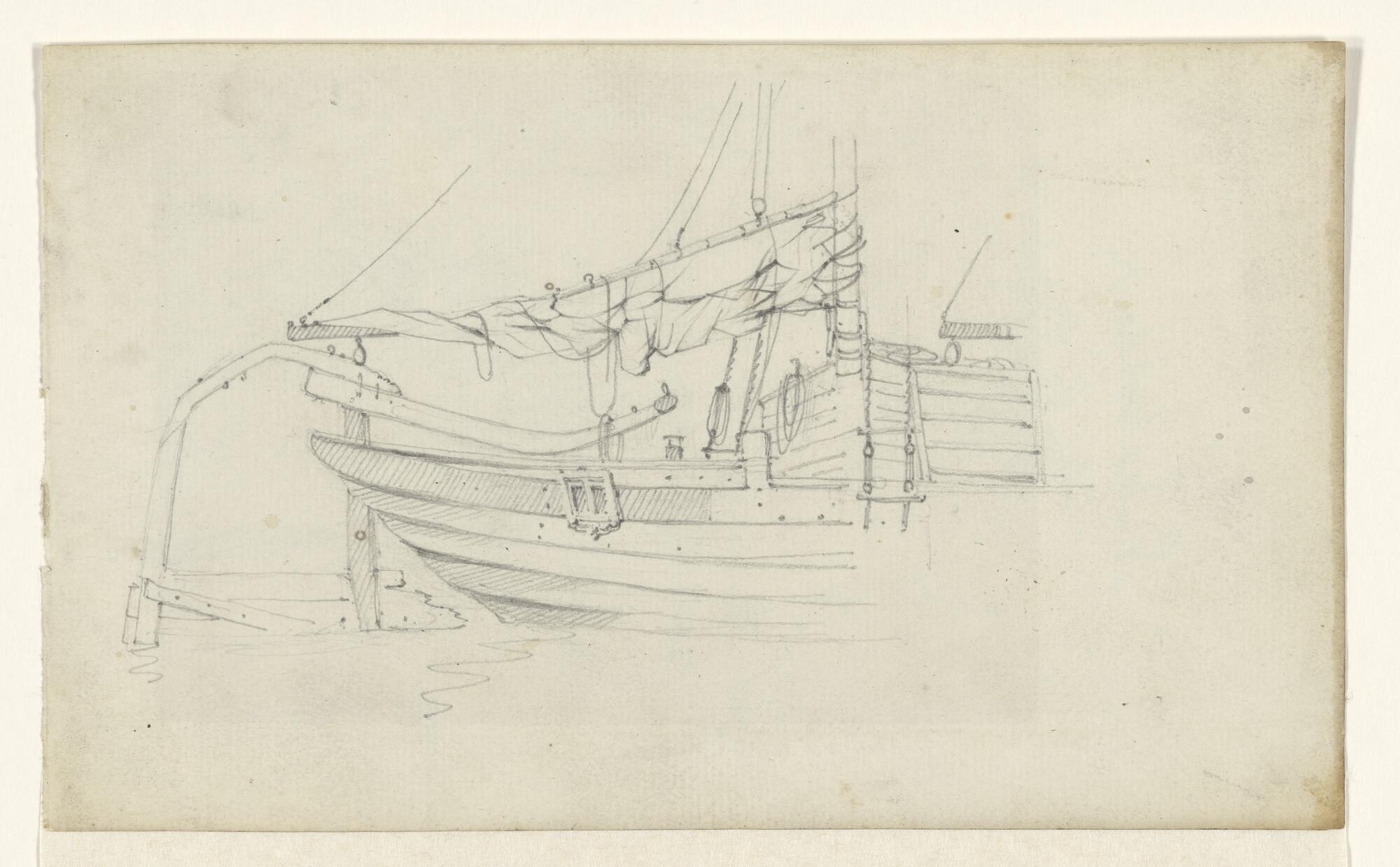 Schets van een achterschip met roer, van een keen