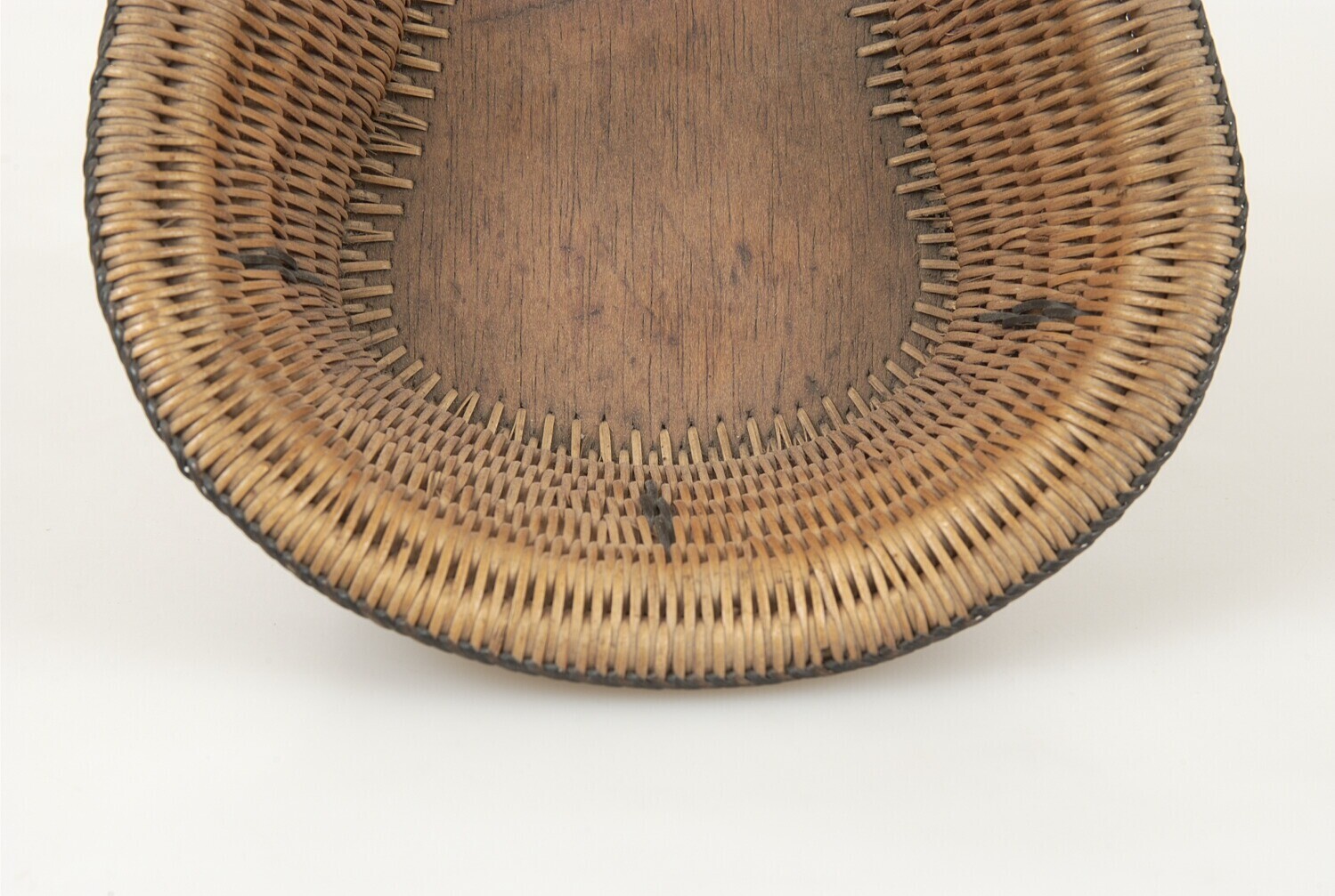 Gevlochten mand van rotan en hout
