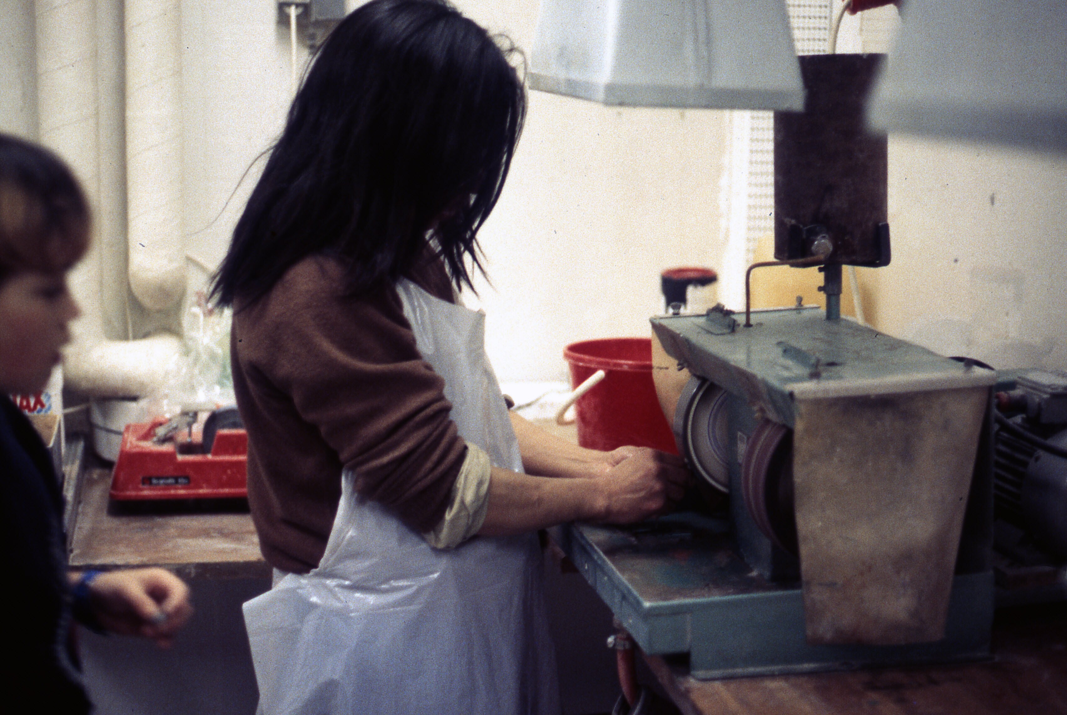 Per Brodersen is bezig met het slijpen van een stukj...