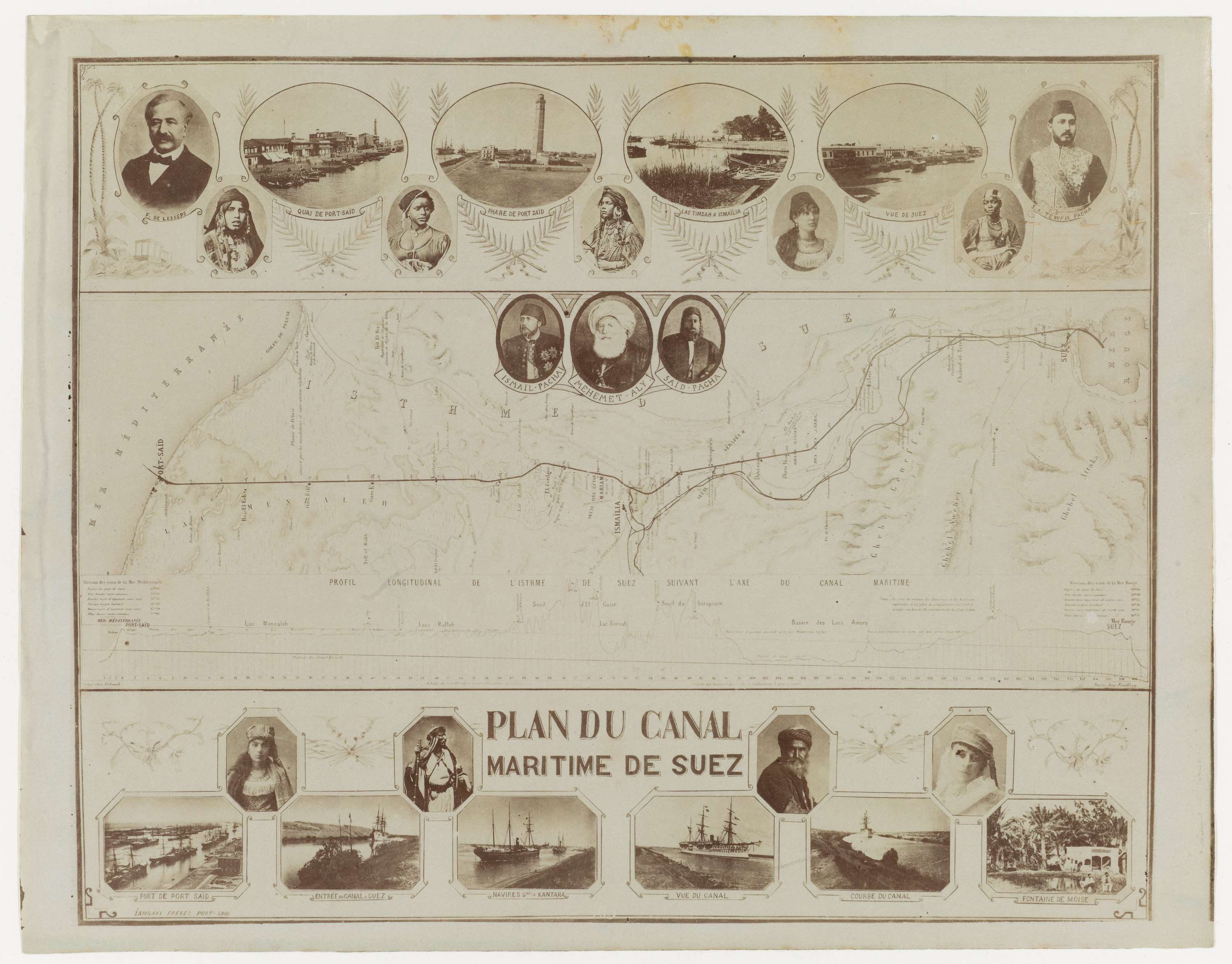 Fotoreproductie van een plattegrond van het Suezkanaal