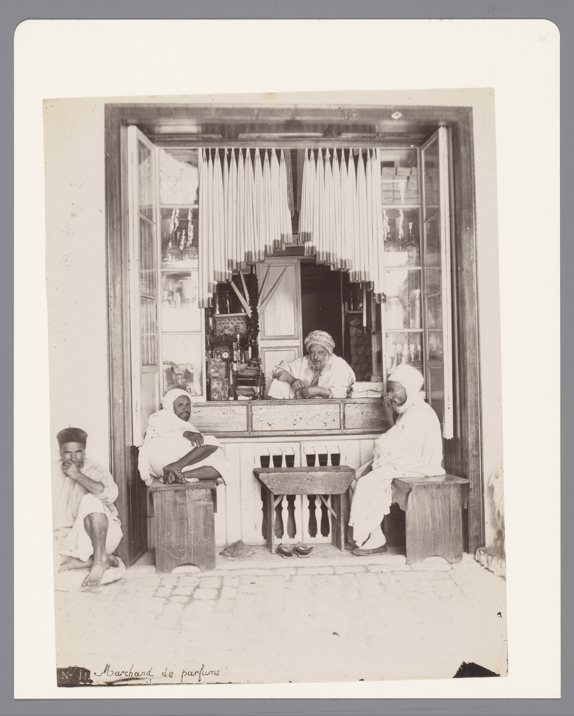 Parfumverkoper in zijn winkel, vermoedelijk in Tunis
