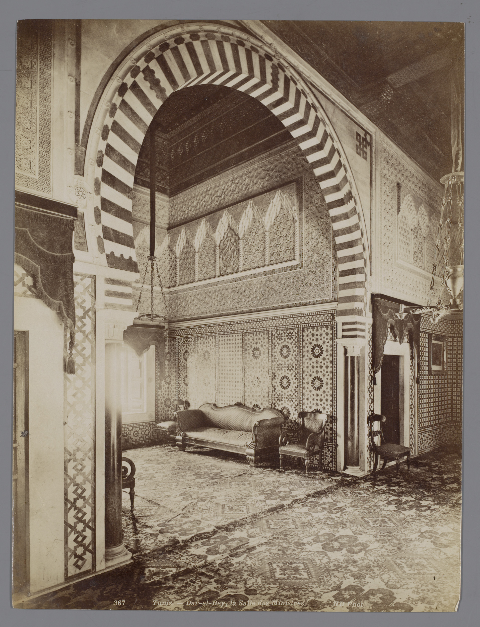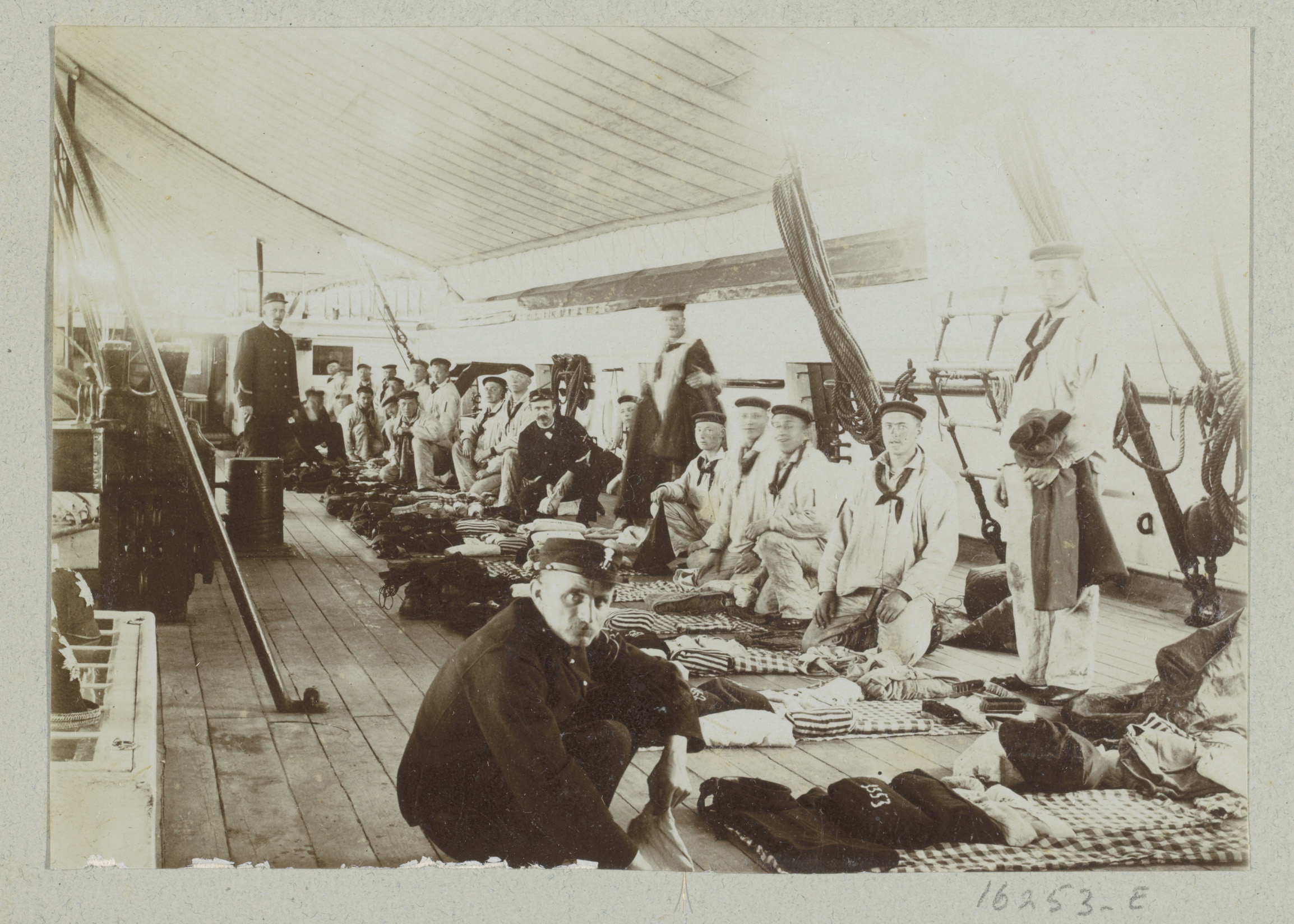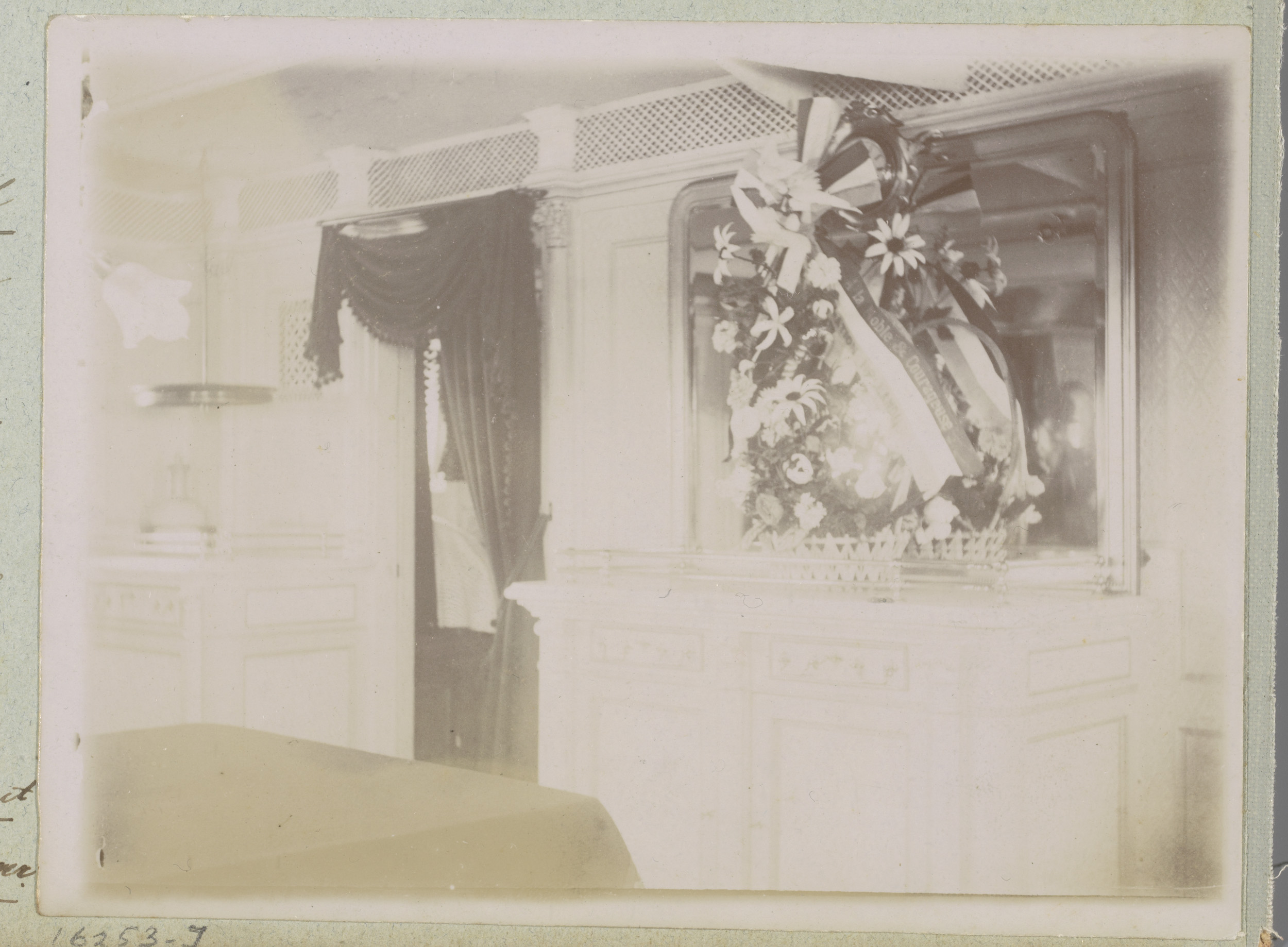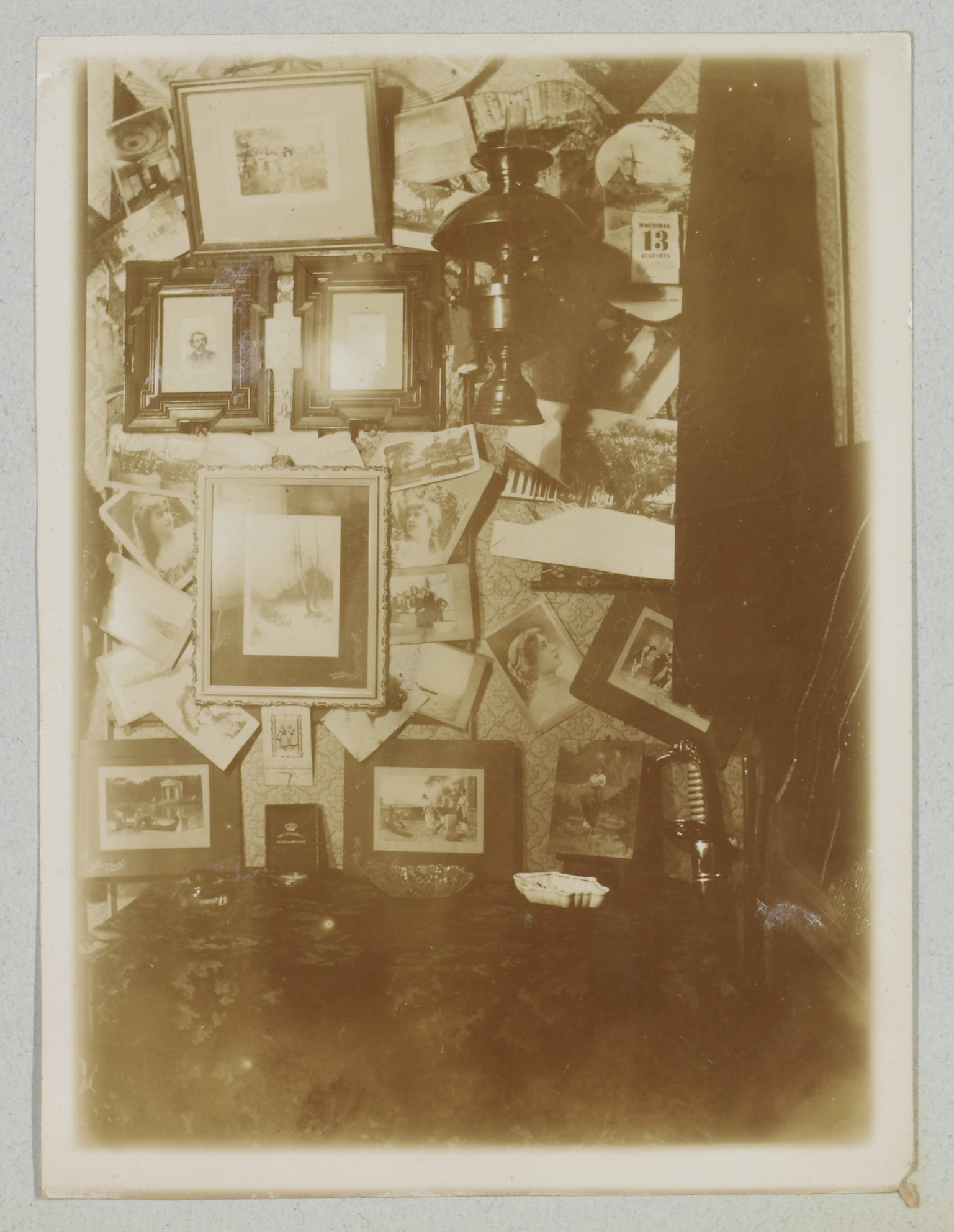 Foto-wand in hut aan boord Gelderland, 1901