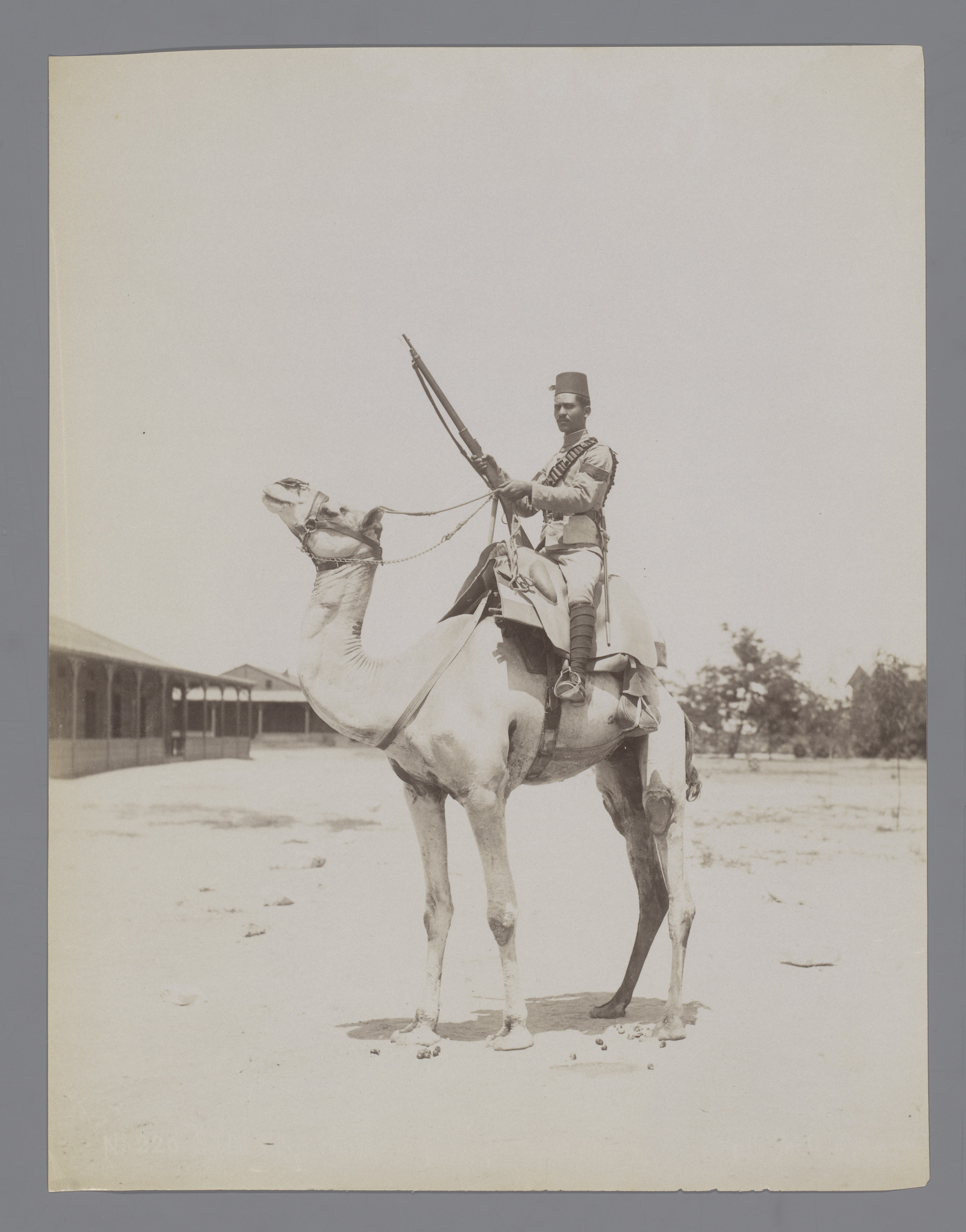 Militair op een kameel, vermoedelijk in Egypte