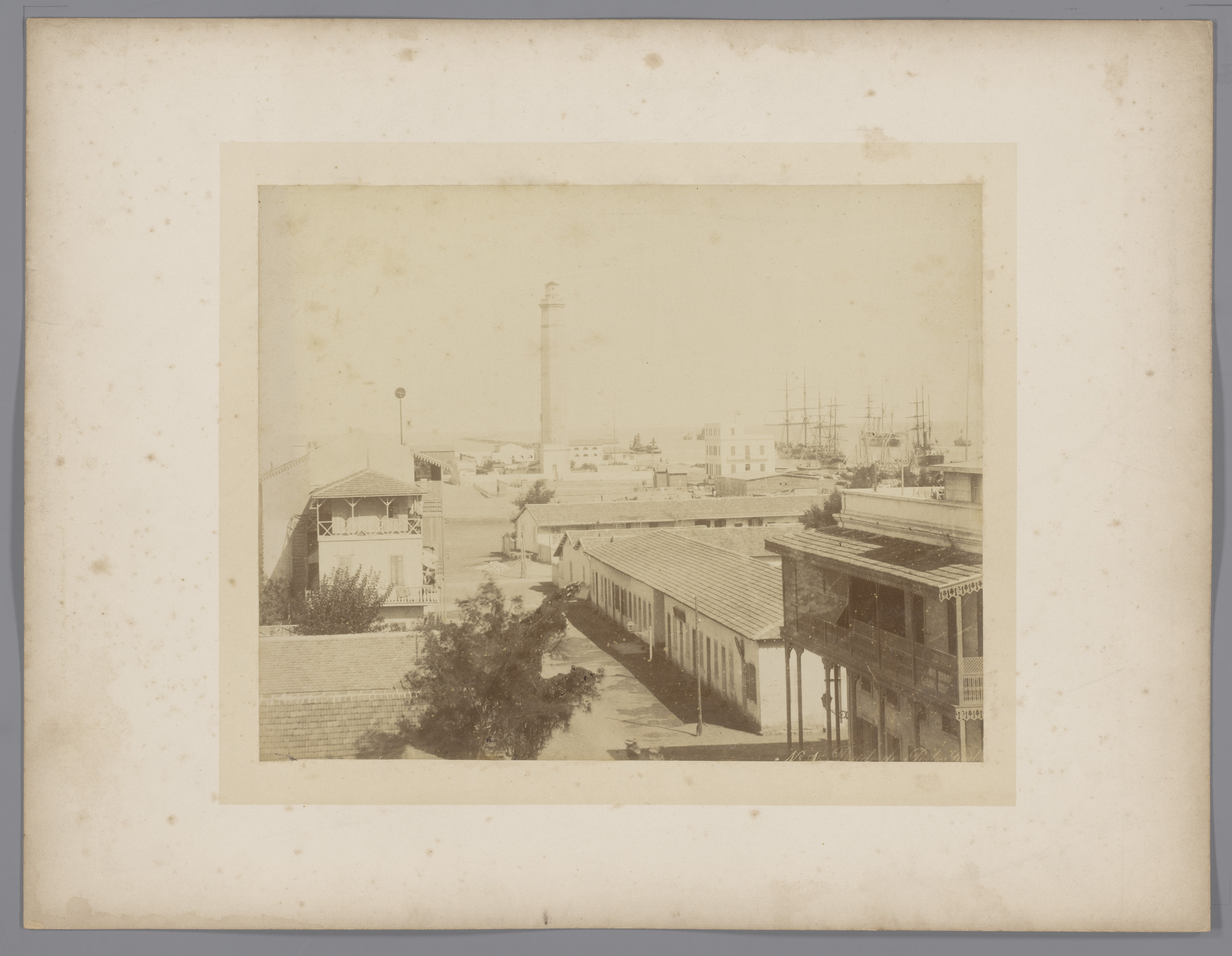 Gezicht op Port Said, in de verte de Middellandse Zee