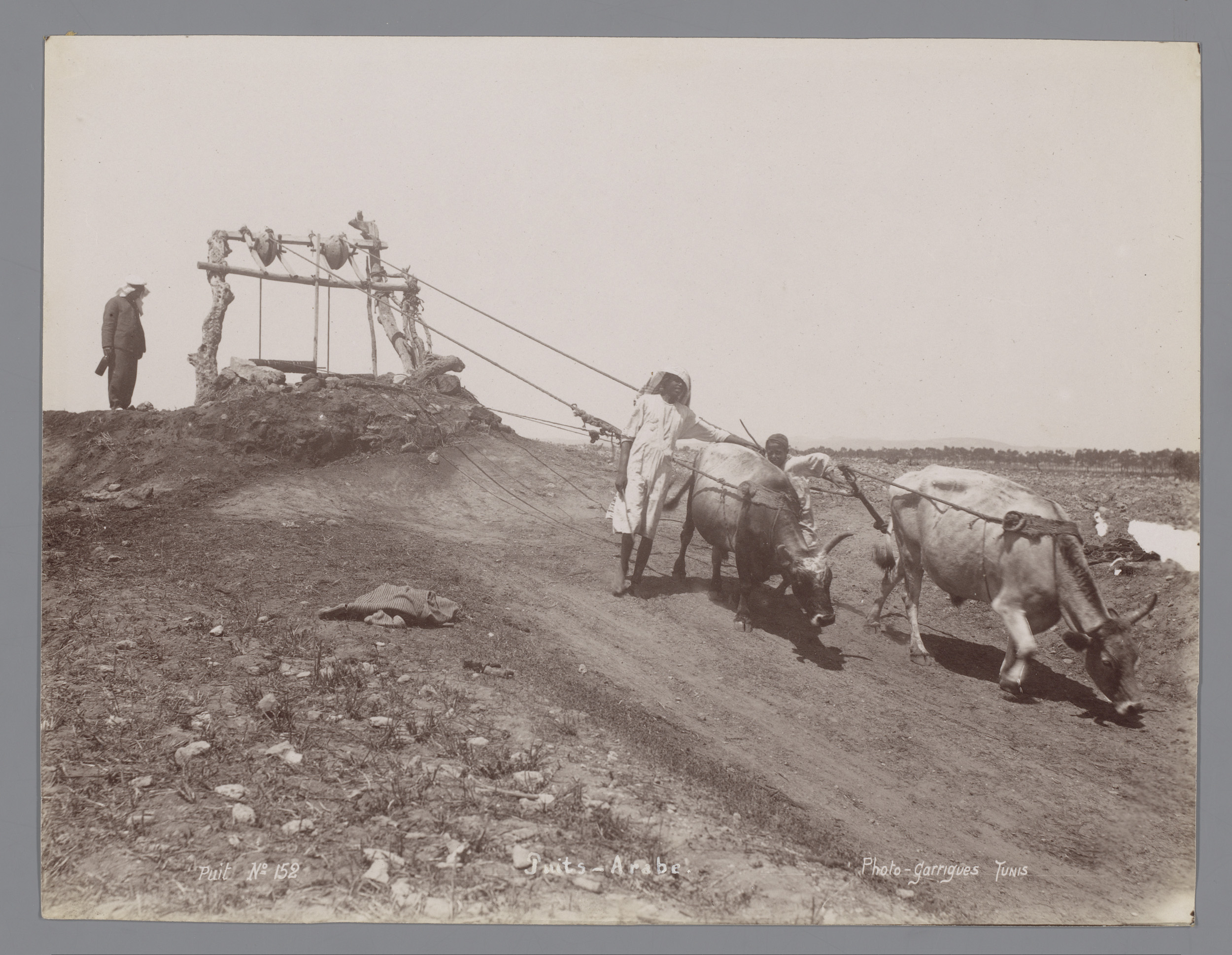 Rijtuig op ijzers voortgetrokken door ossen