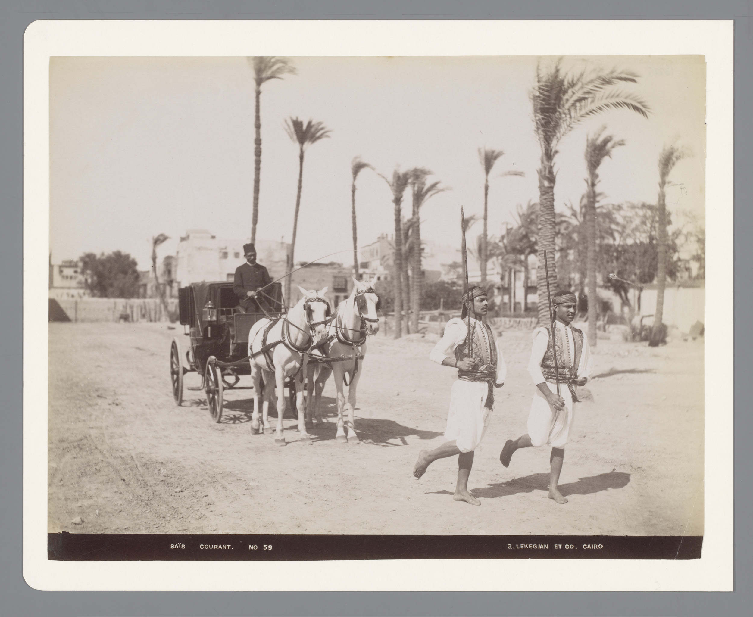 Koets en koetsier met twee wachters in Caïro