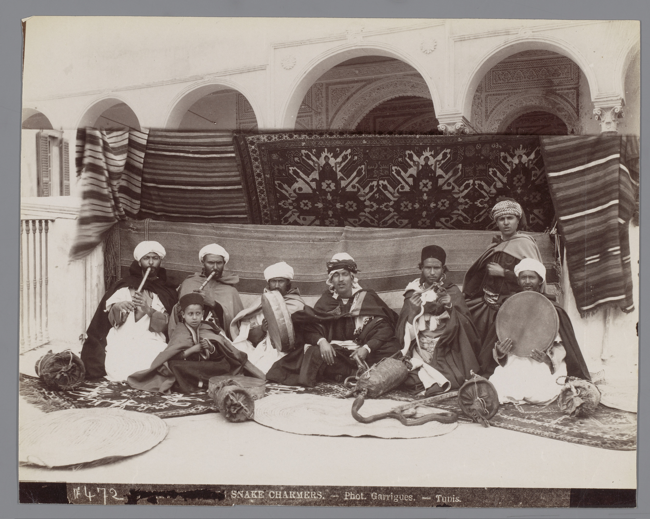 Groepsportret van zes onbekende bedoeïenen in Egypte