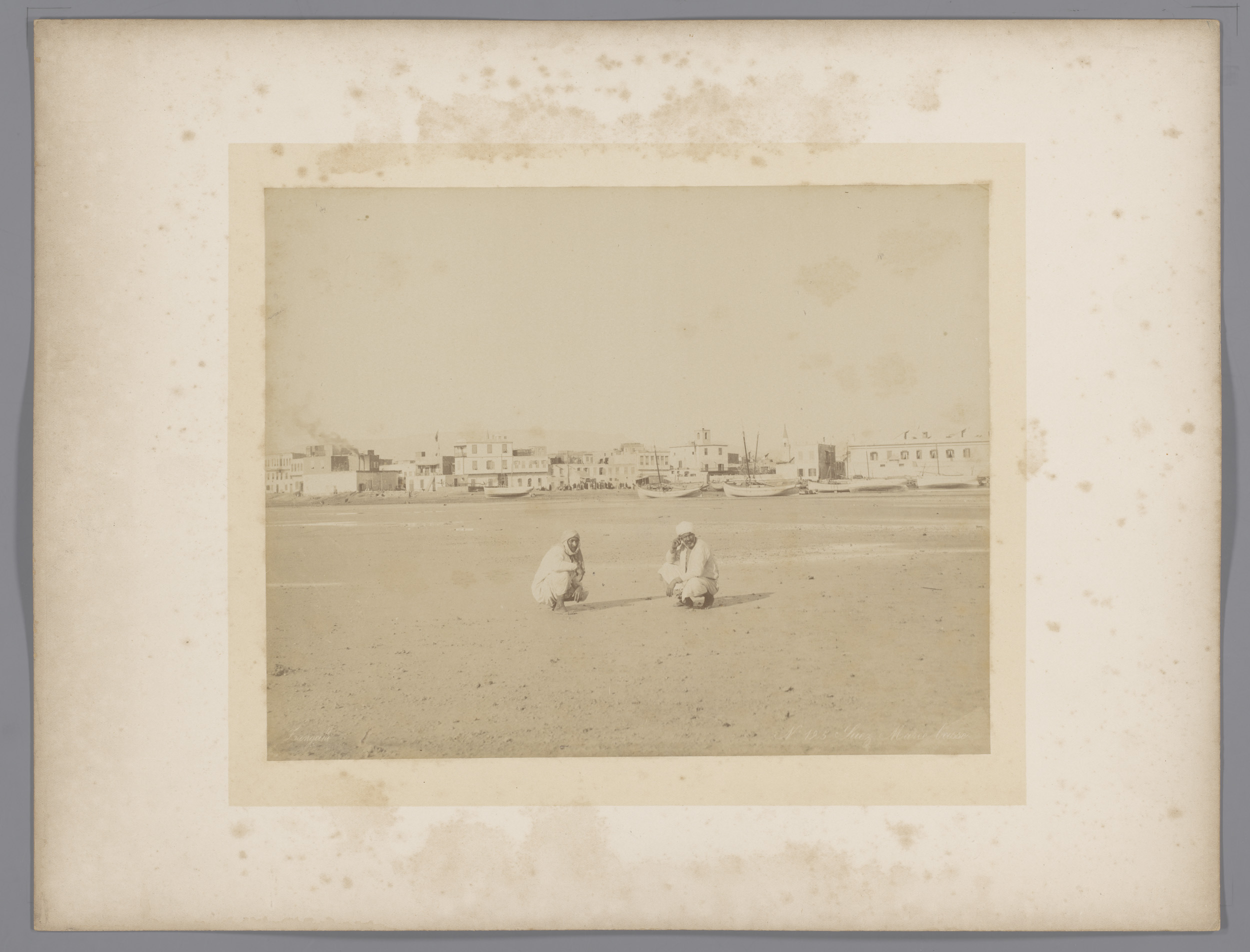 Twee mannen in de haven van Suez bij eb
