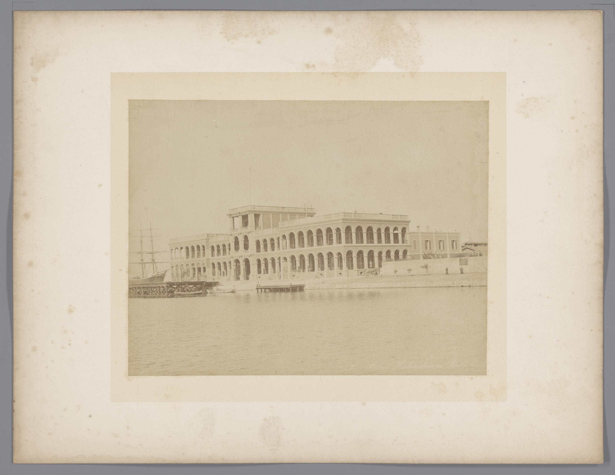 Gezicht op het paleis van Mohammed Said bij de haven...
