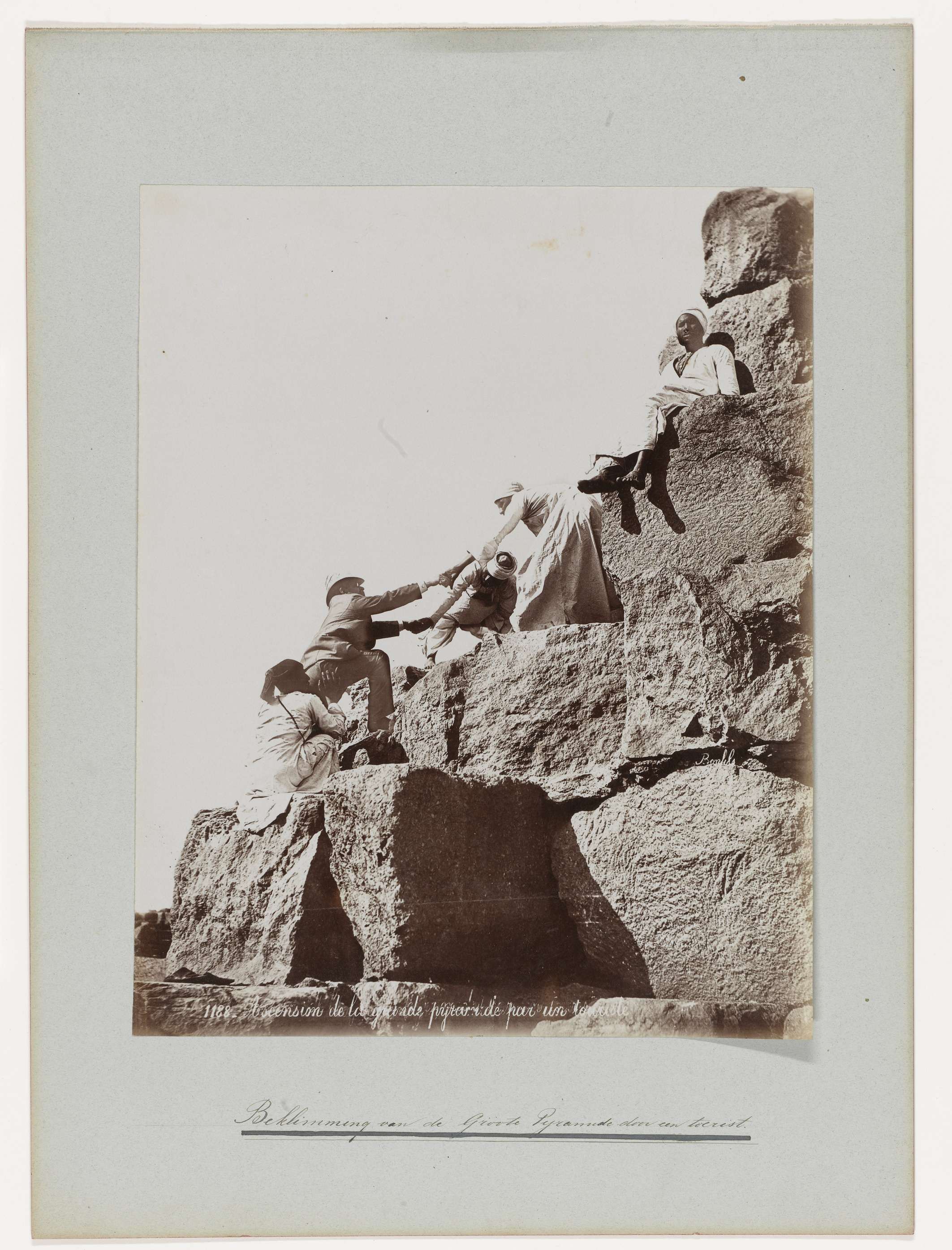 Ascension de la grande pyramide par un touriste