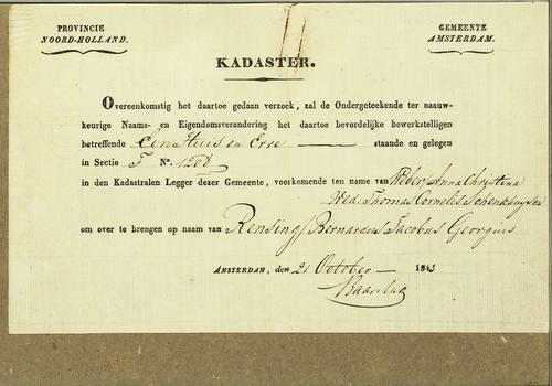 Formulier uitreksel kadastrale legger Amsterdam, 1841
