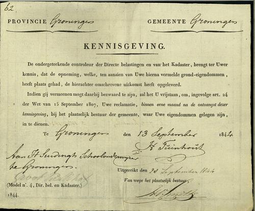 Kennisgeving opneming grondeigendommen, 1844