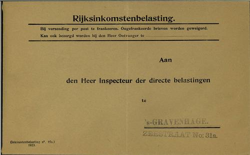 Enveloppe, rijksinkomstenbelasting, 1920
