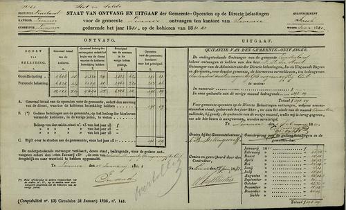 Formulier staat gemeentelijke opcenten, 1841-1842