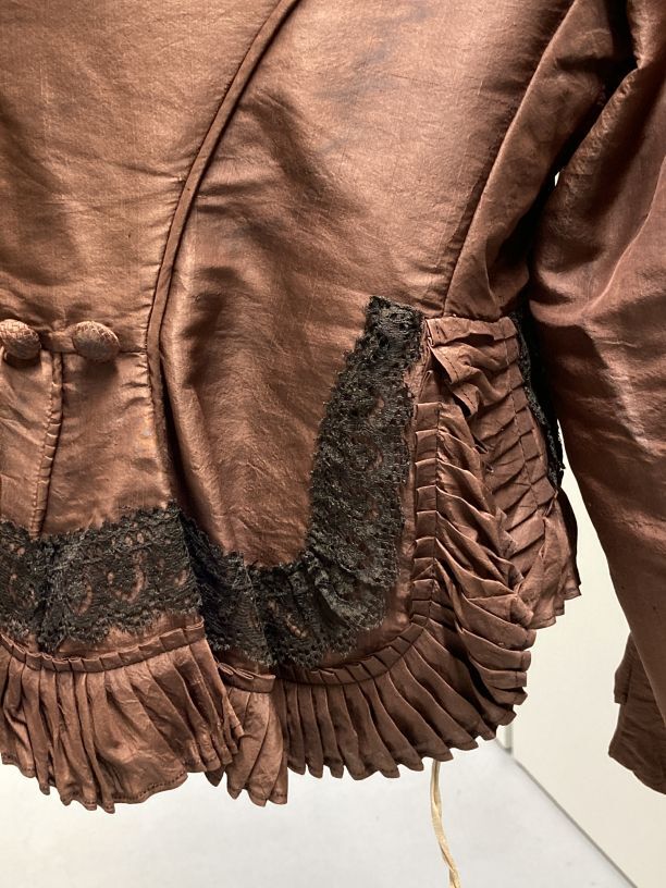 Kostuumjak met schoot van zwarte zijde met moiré str...