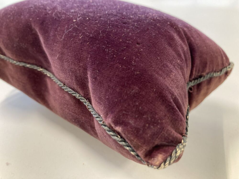 Rood fluwelen speldenkussen met de letters D.V.A. / ...