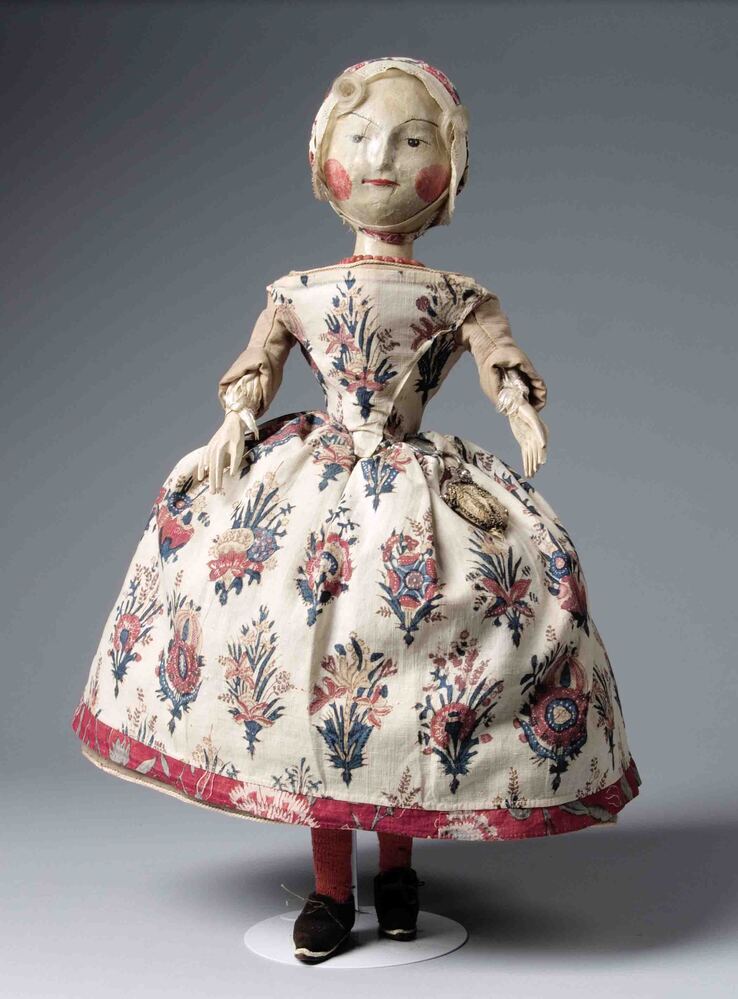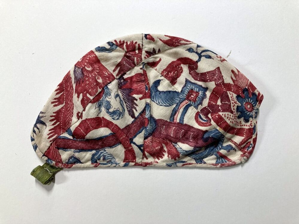 Sitsen muts met keelbandje van meisjespop uit 1742