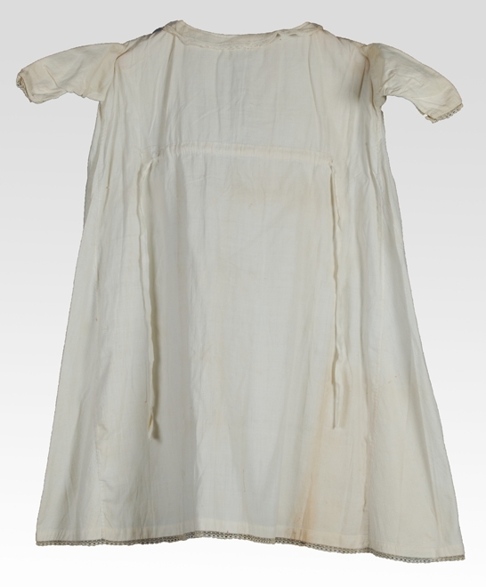 Lang jurkje of japonnetje van witte gestreepte katoe...