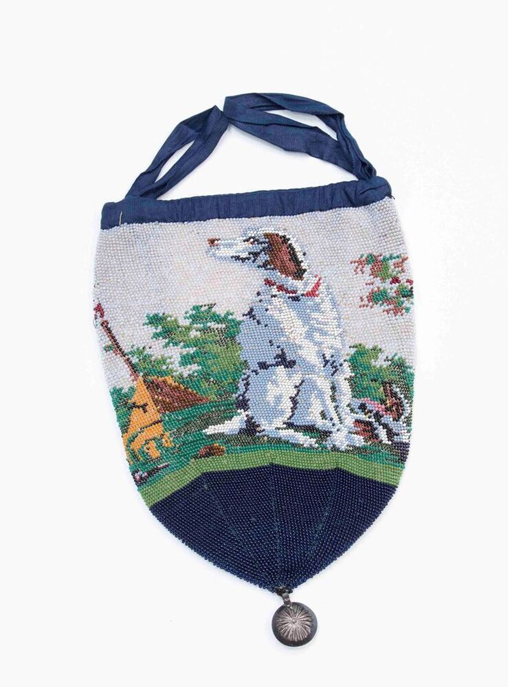 Een tabakszak met kralen gebreid gevoerd met leer, v...
