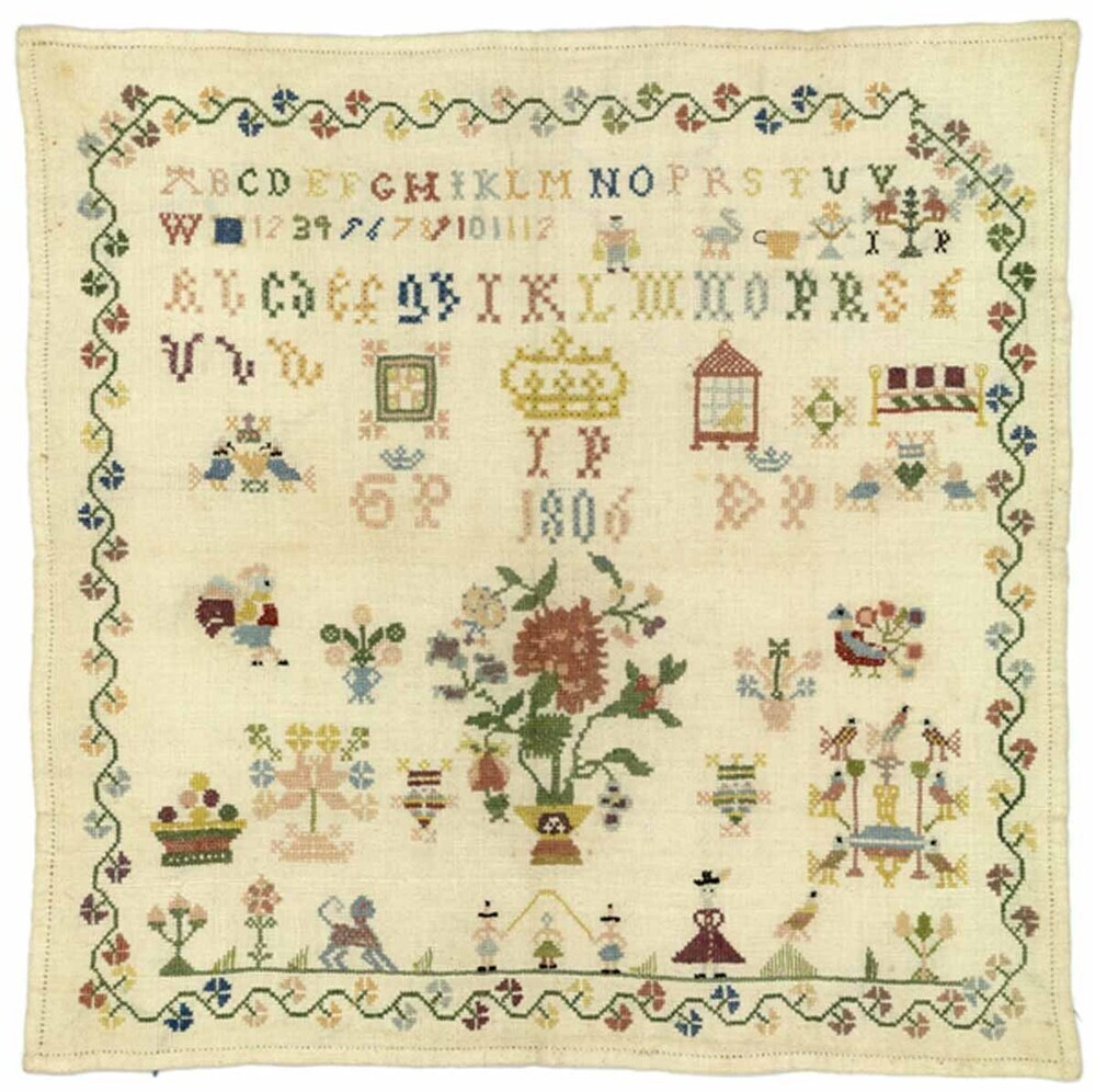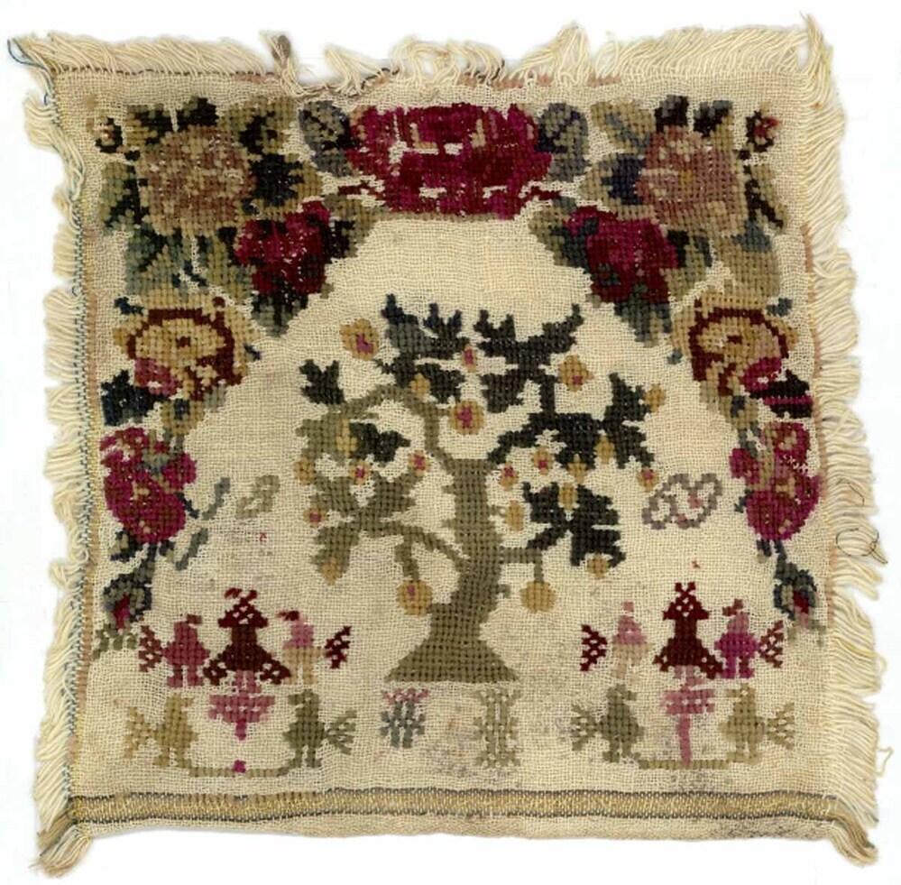 Borduurstuk met appelboom, gemerkt I.I. 1869