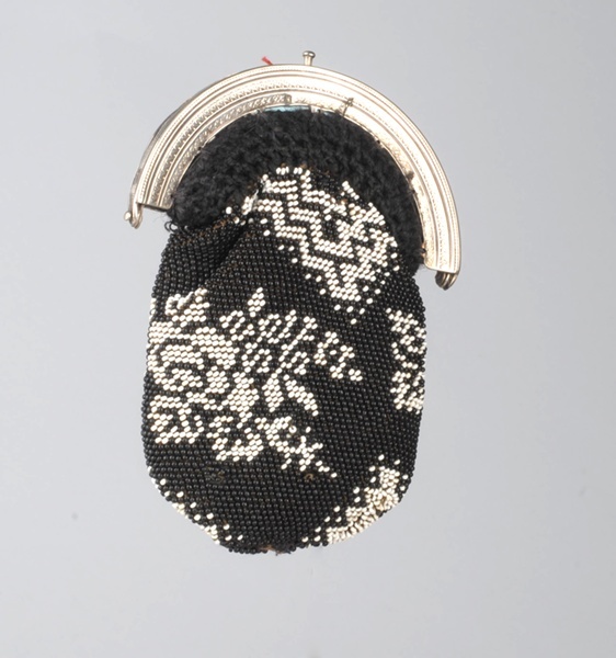 Zilveren beugel met zwart-witte kralenbeurs met bloe...