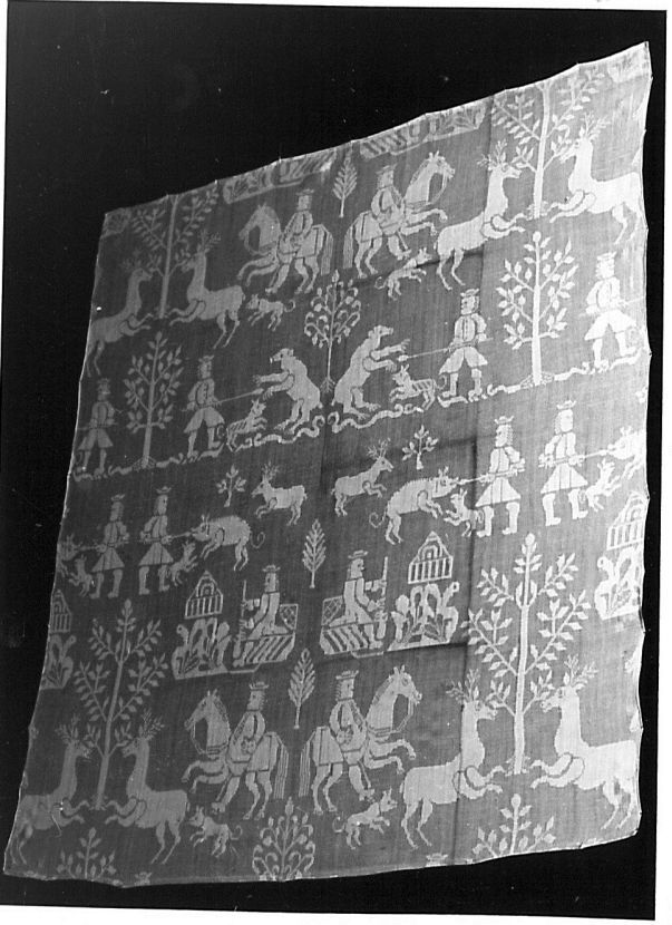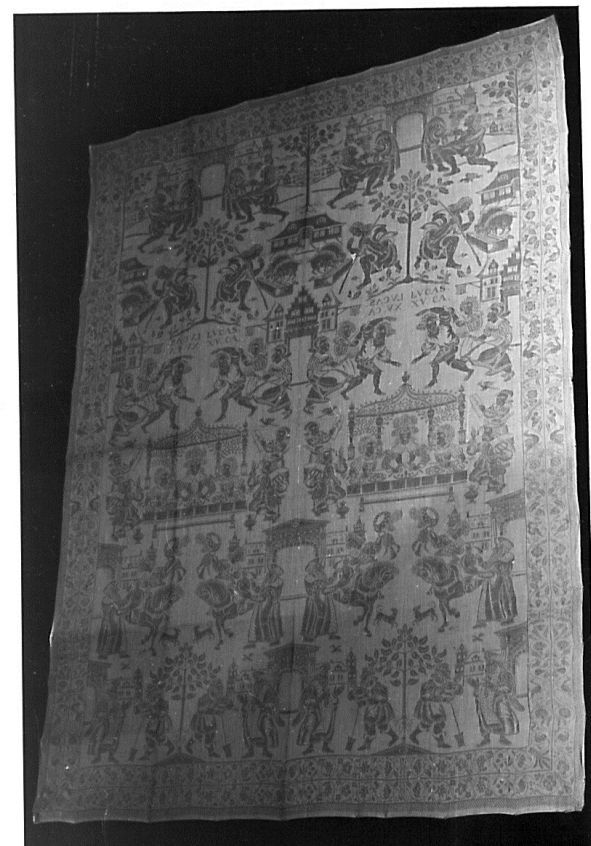 Servet van wit linnen damast, spiegelend stuk goed, ...
