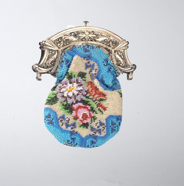 Beugelbeurs met rond beursje met doorzichtige kralen...