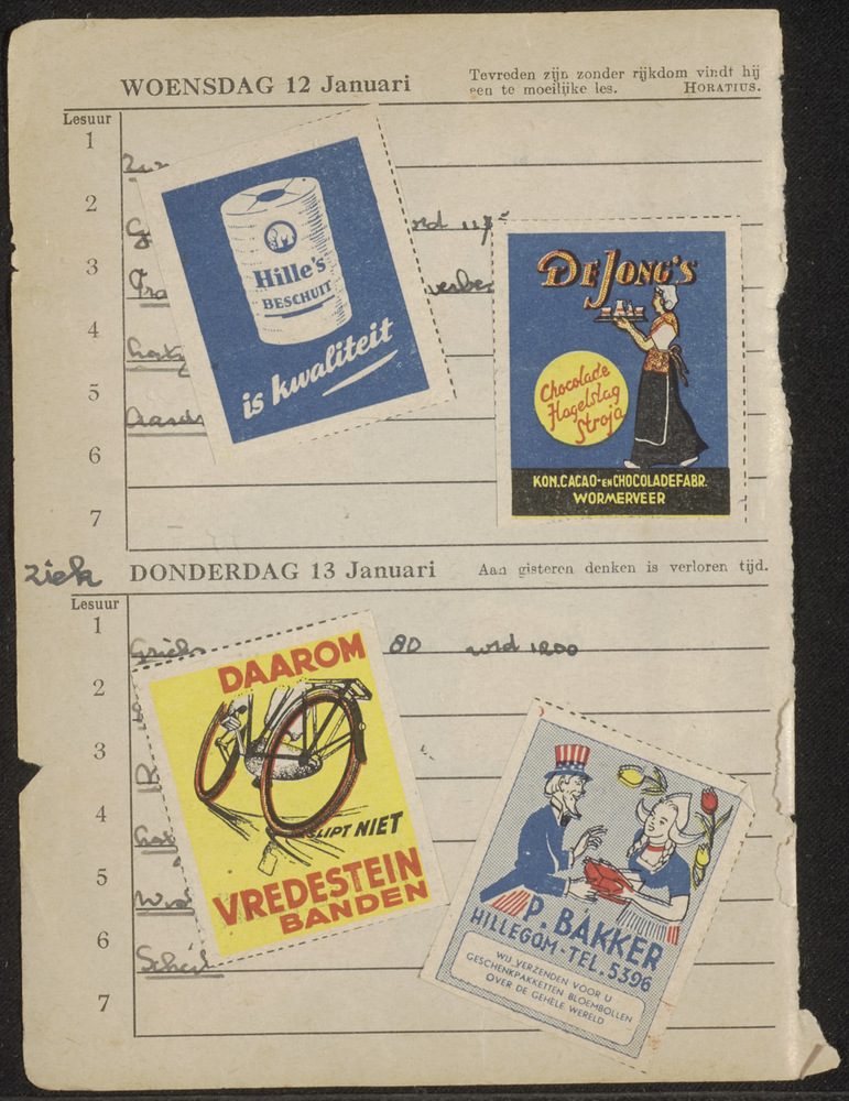Bladzijde uit schoolagenda met sluitzegels