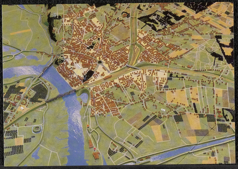 Briefkaart Maquette, Waalbruggen Nijmegen in voorlop...