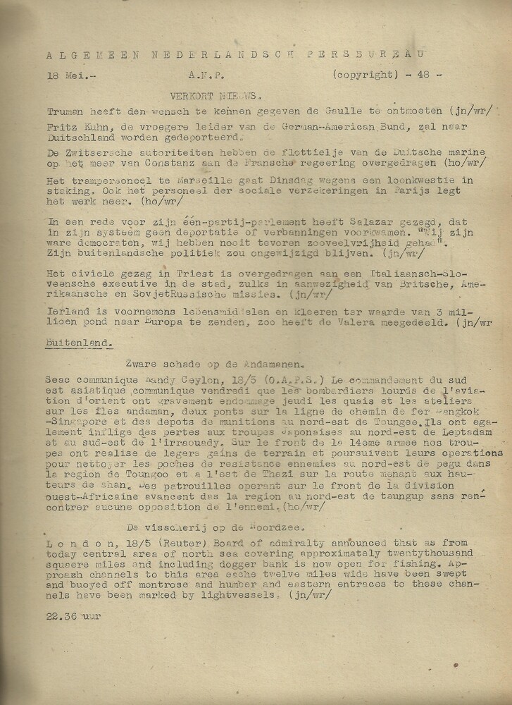 nieuwsberichten donderdag 5 april 1945