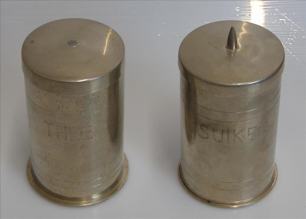 Suikerpot en theepot gemaakt van een granaathuls