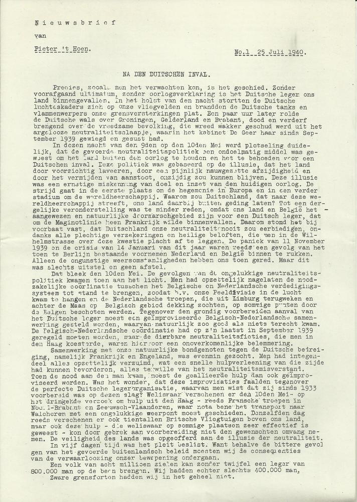 Nieuwsbrief van Pieter 't Hoen, Na den Duitschen inval.