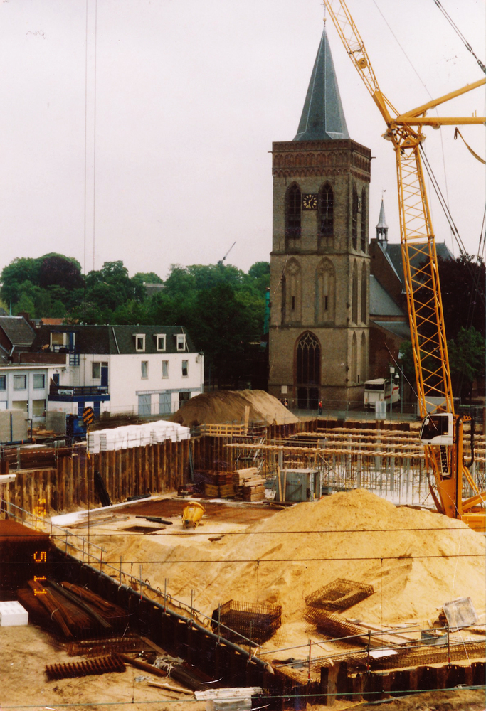 Bouw van Postkantoor aan de Langestraat gezien vanui...