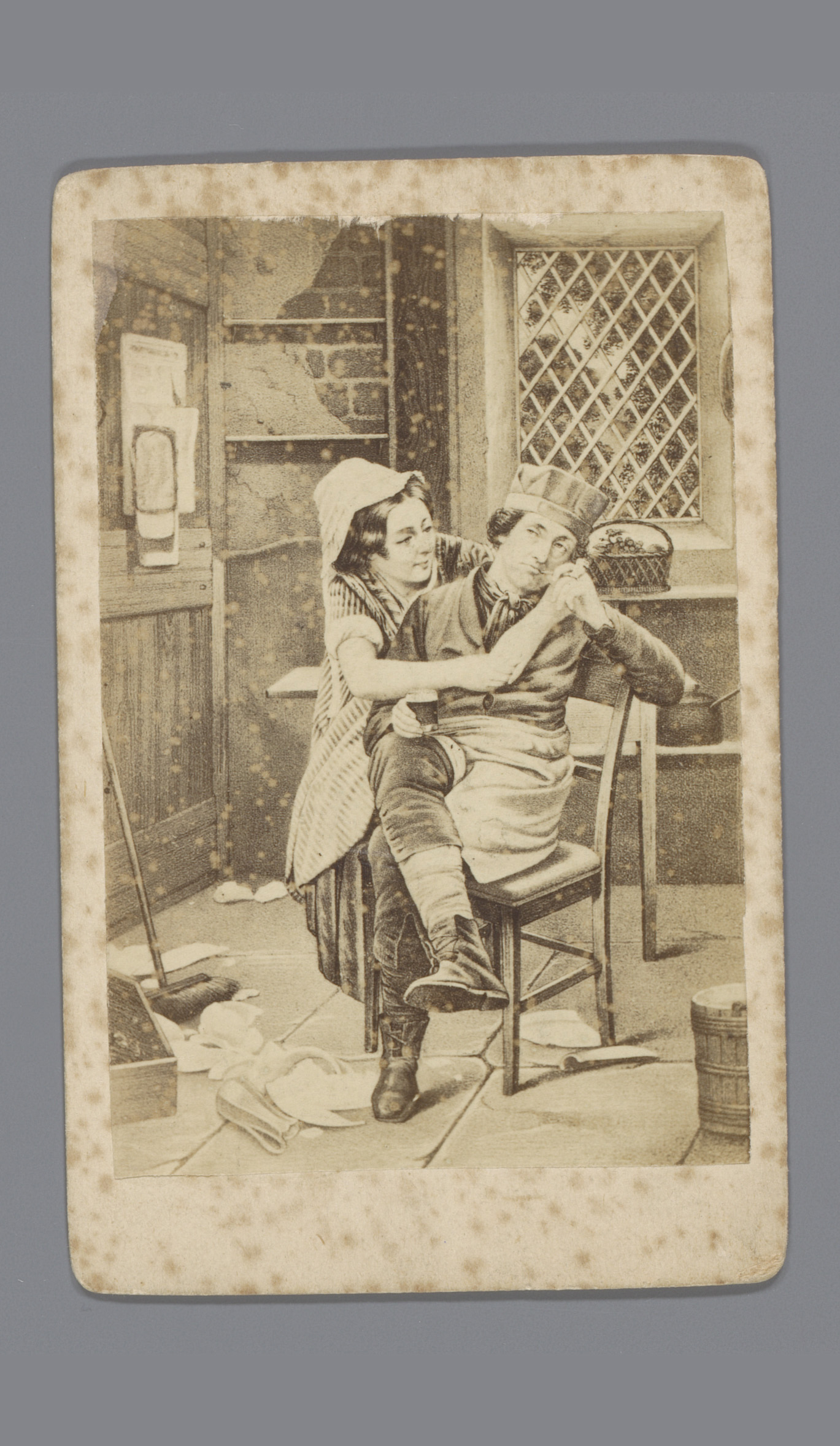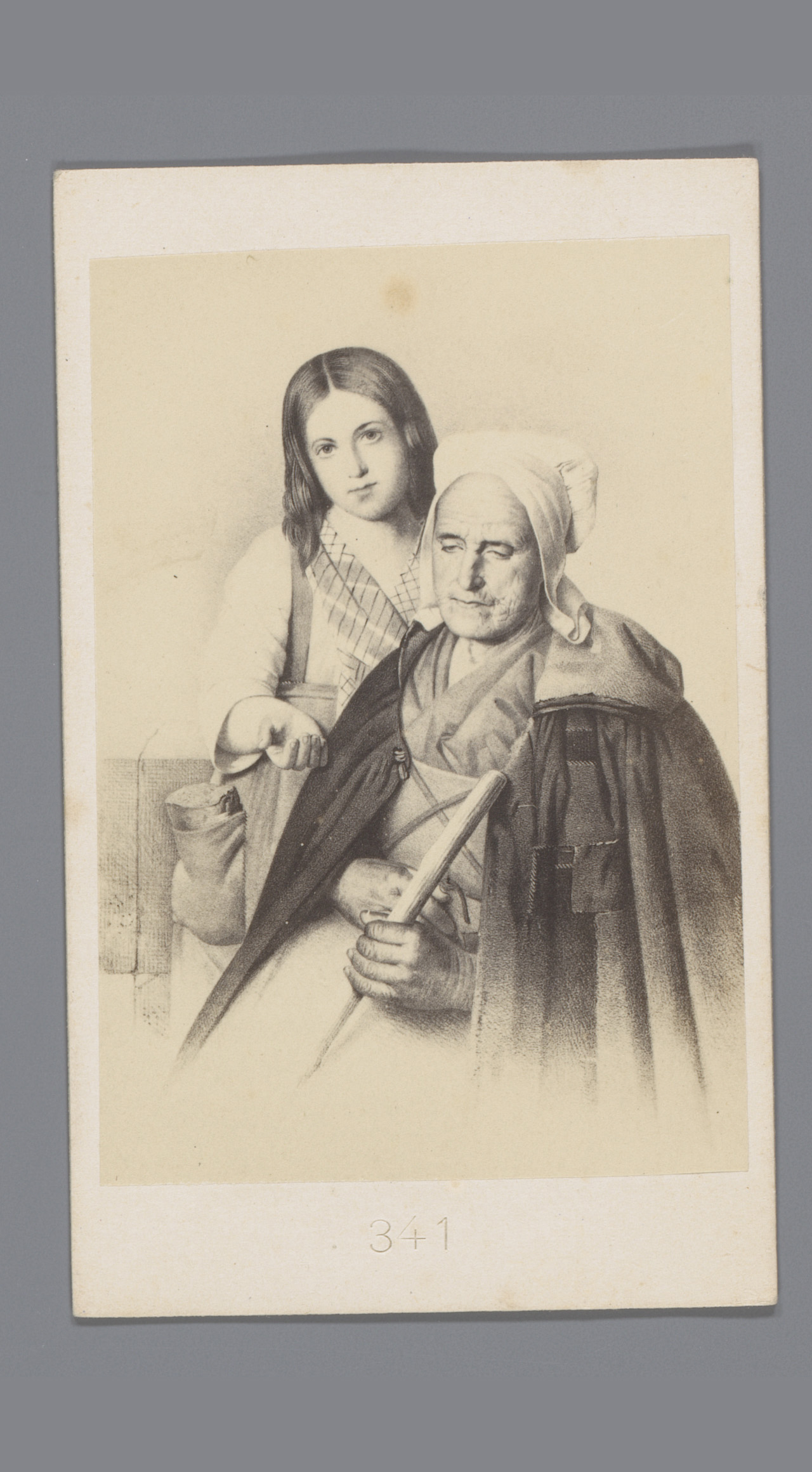 Fotoreproductie van een tekening van twee bedelende ...