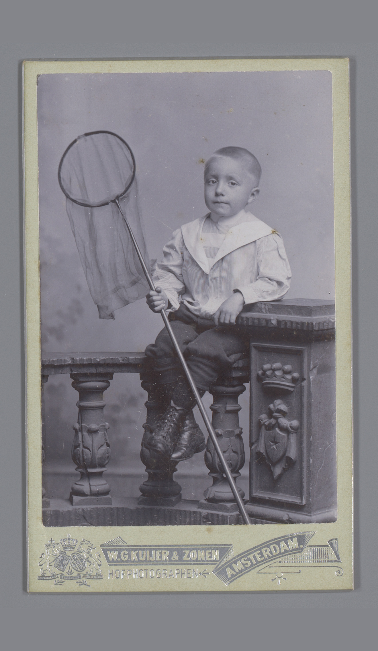 Portret van een onbekende jongen met schepnet op een...