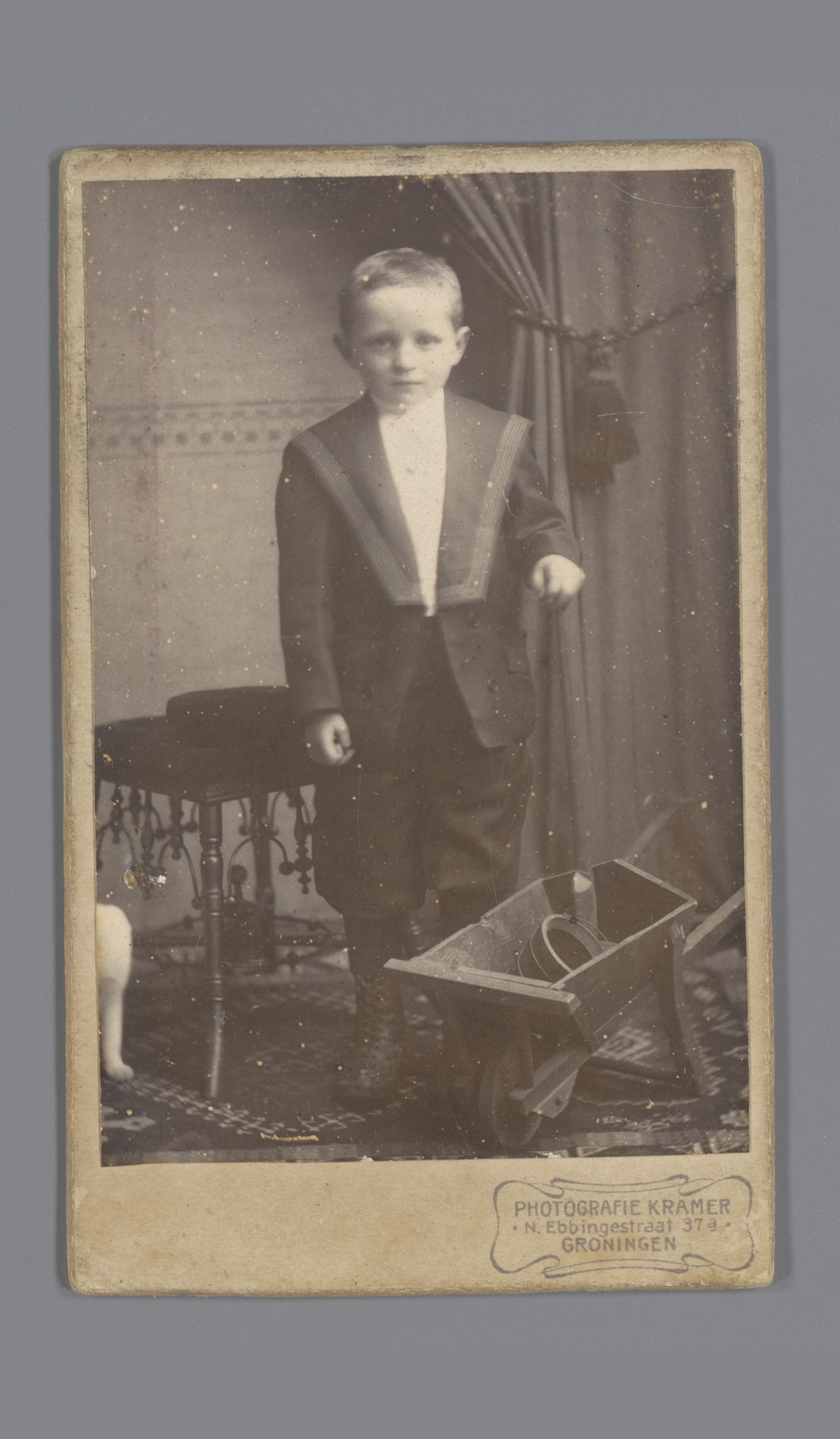 Portret van een onbekende jongen met kruiwagen