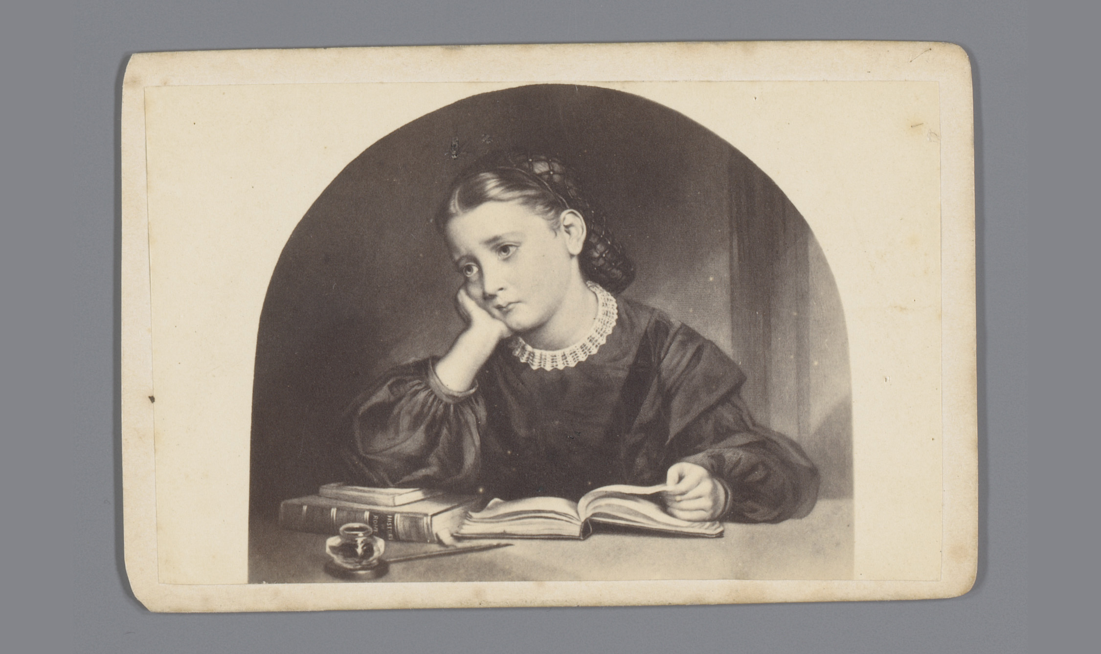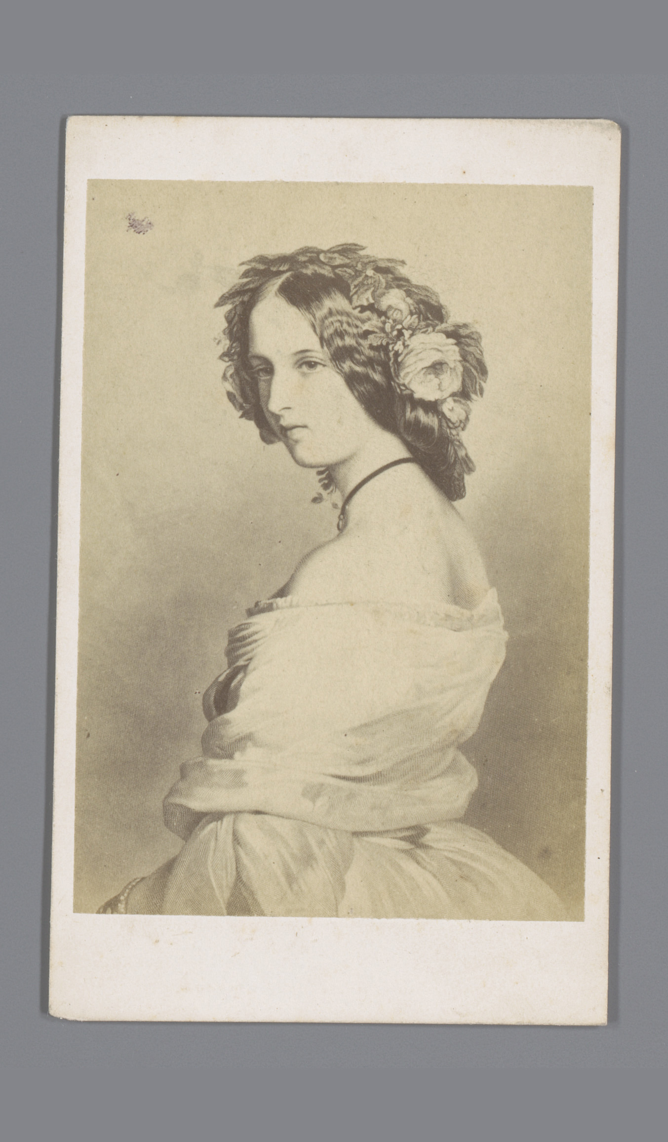Fotoreproductie van een tekening van een jonge vrouw