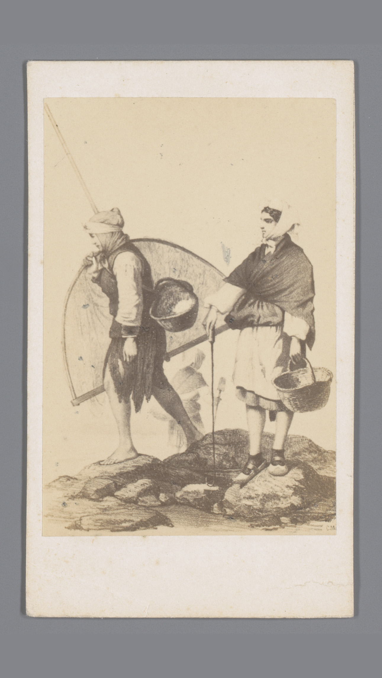Fotoreproductie van een tekening van vissers