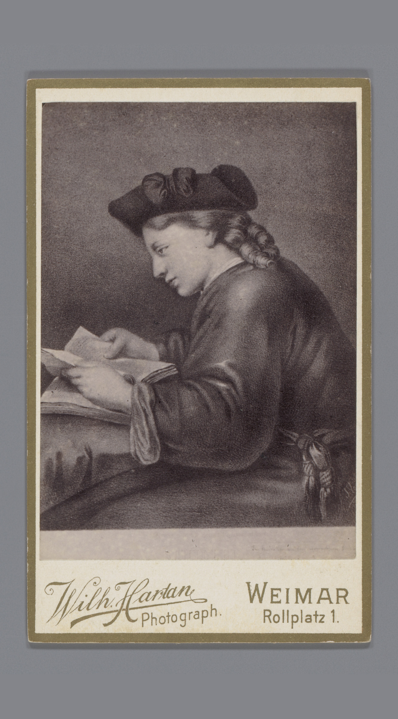 Fotoreproductie van een schilderij van Werther die L...