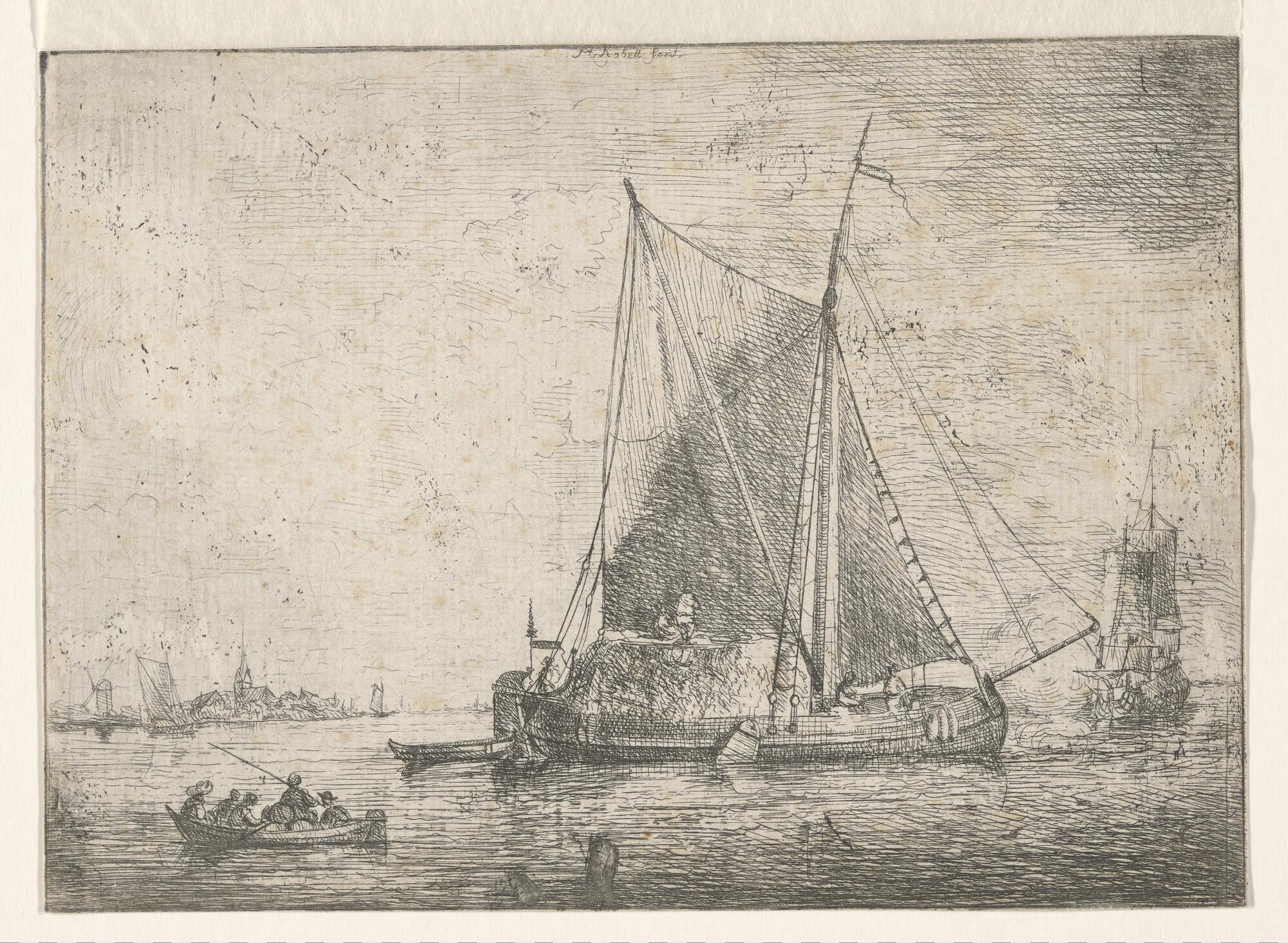 Een spiegelpaviljoenjacht e.a. schepen voor een have...