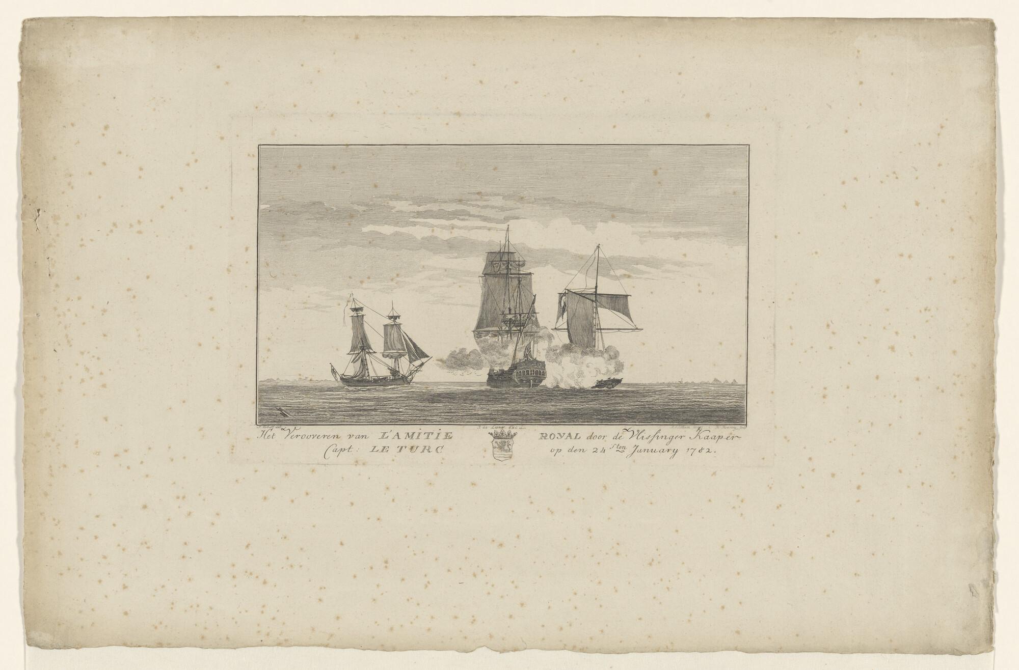 Een Frans fregat en een linieschip