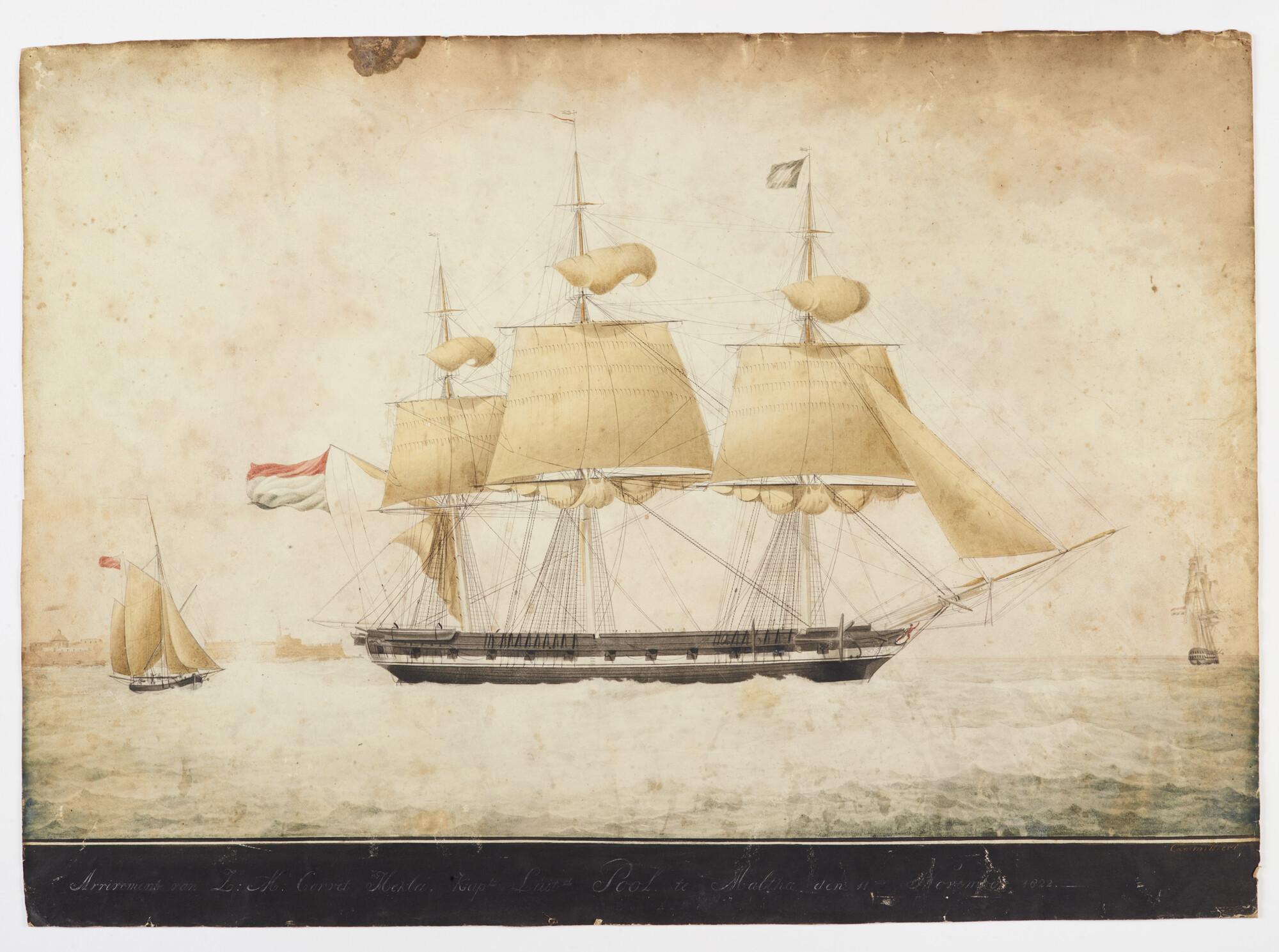 Het korvet Zr.Ms. Hekla arriveert ter rede van Malta