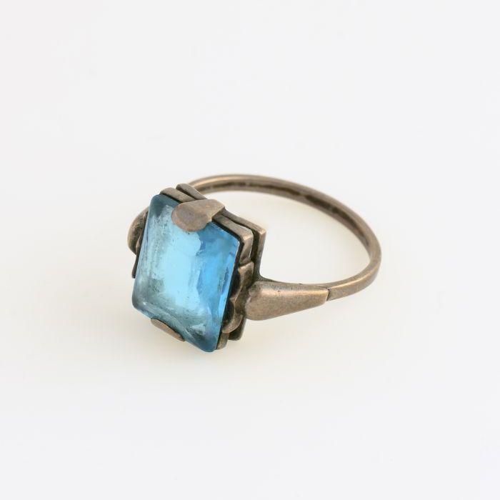 Zilveren ring met grote facetgeslepen rechthoekige l...
