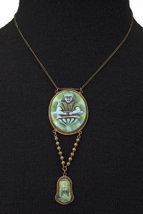 Koperen ketting met ovaal medaillon waarin reliëf va...